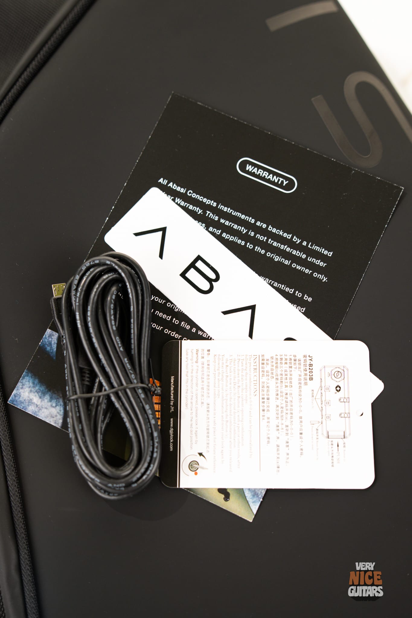 Includes: Original gigbag, Inspection paper, Warranty card, Abasi sticker, Fishman cable.