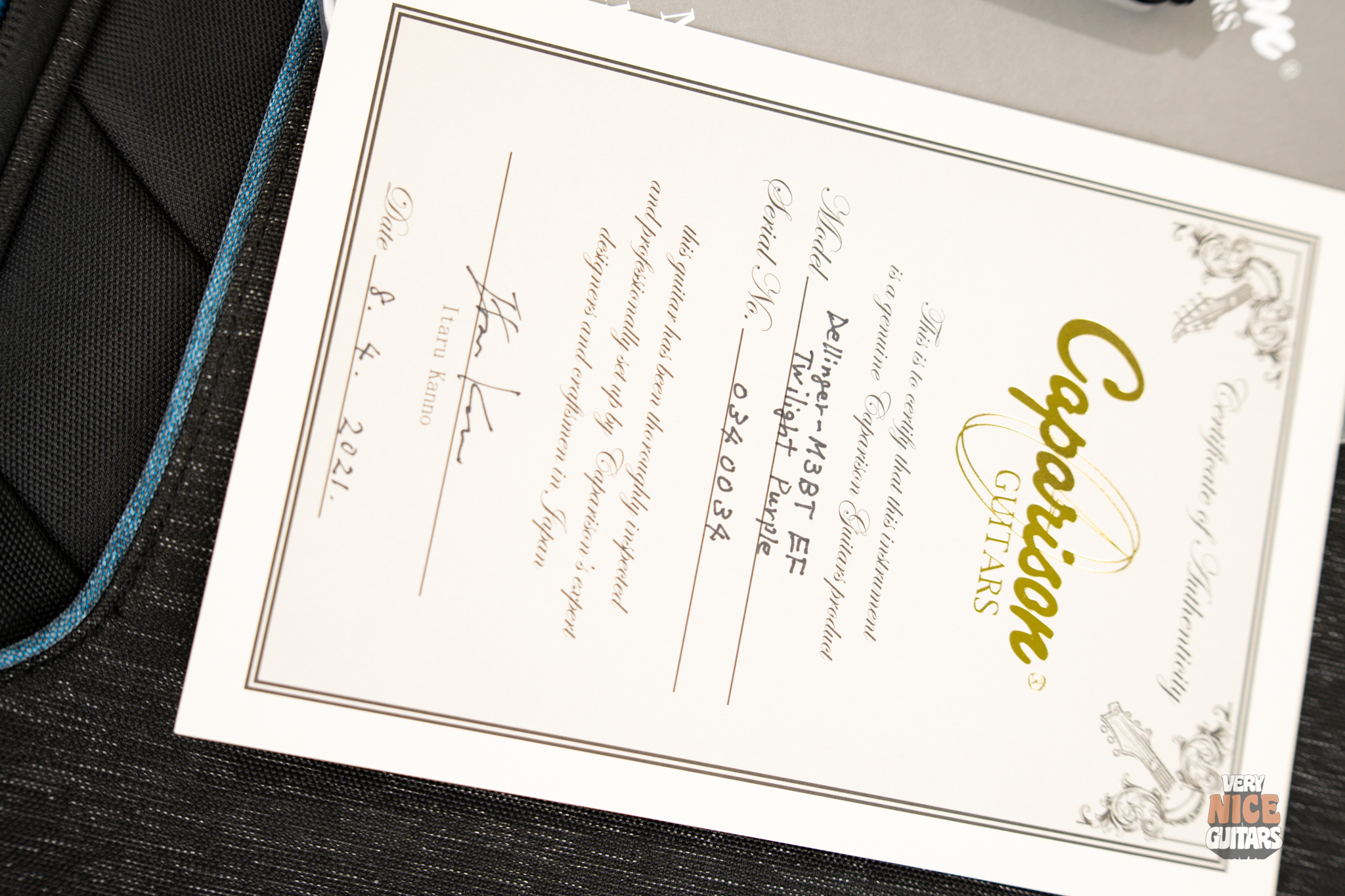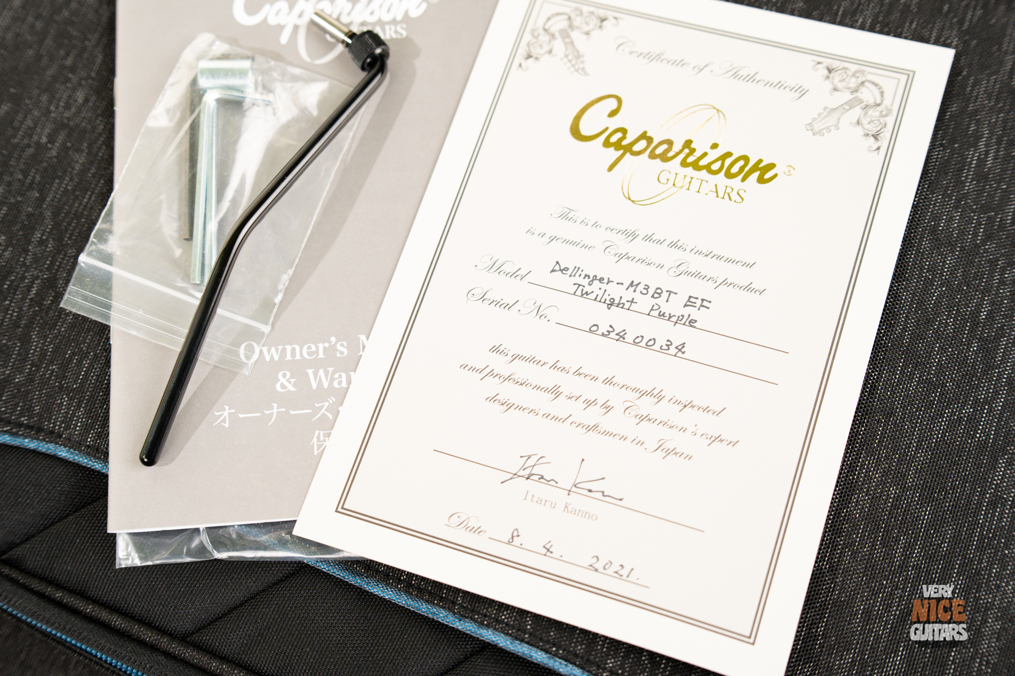 Includes: Blues Reunion Caparison Gigbag, Truss rod wrench, Tremolo arm, Certificate of authenticity, Owner’s manual.