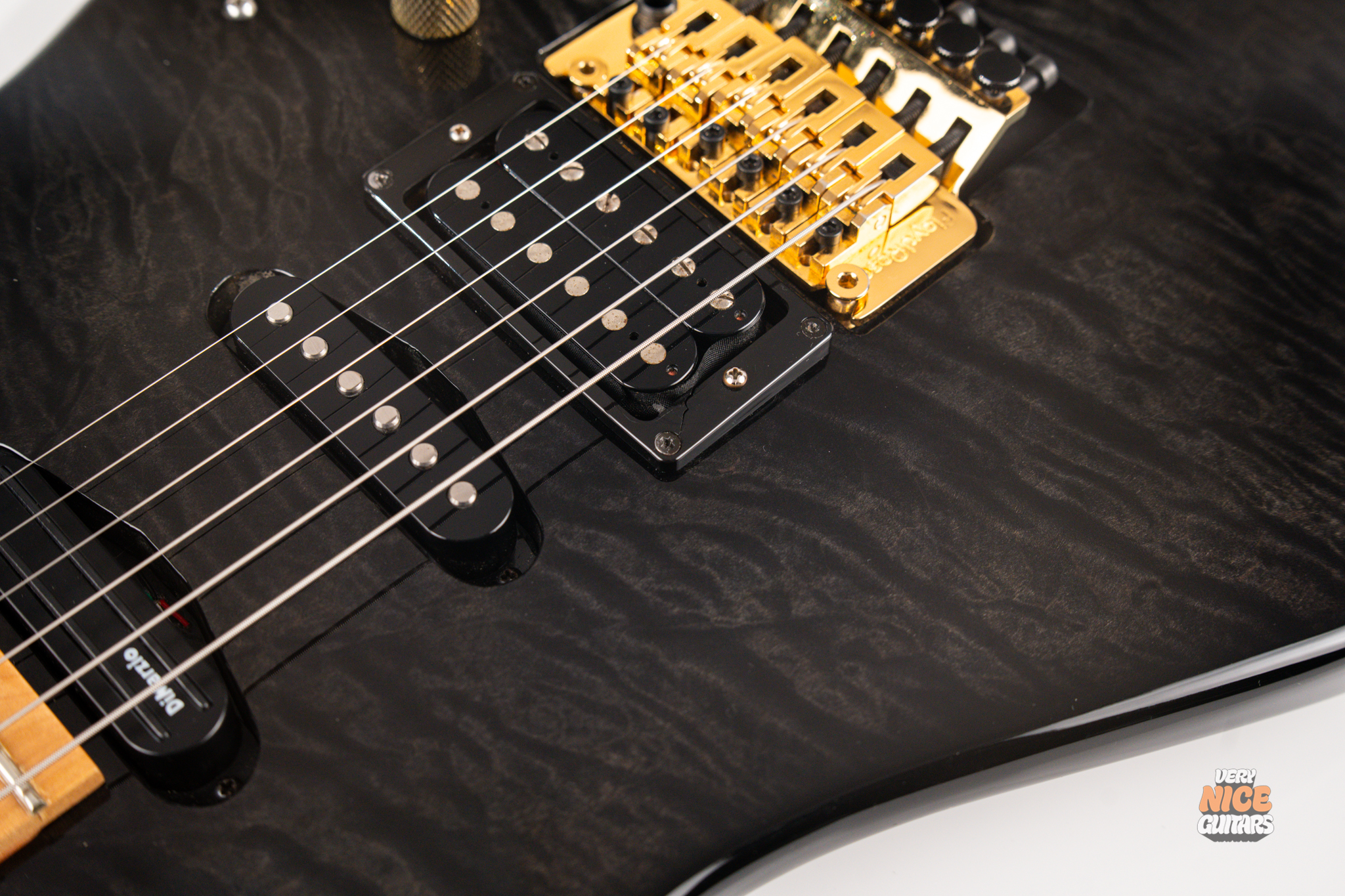 - Pickups: Dean USA Shredhead (bridge), DiMarzio Vintage Blues (middle), DiMarzio Fast Track (neck)