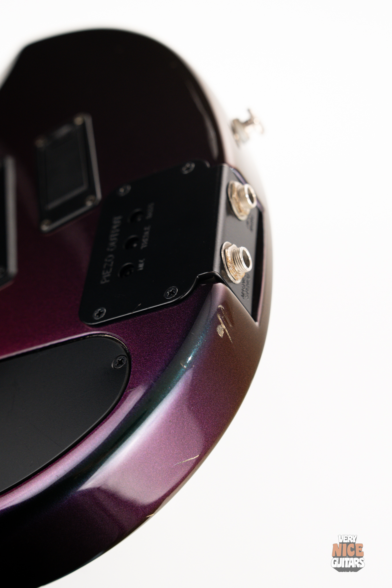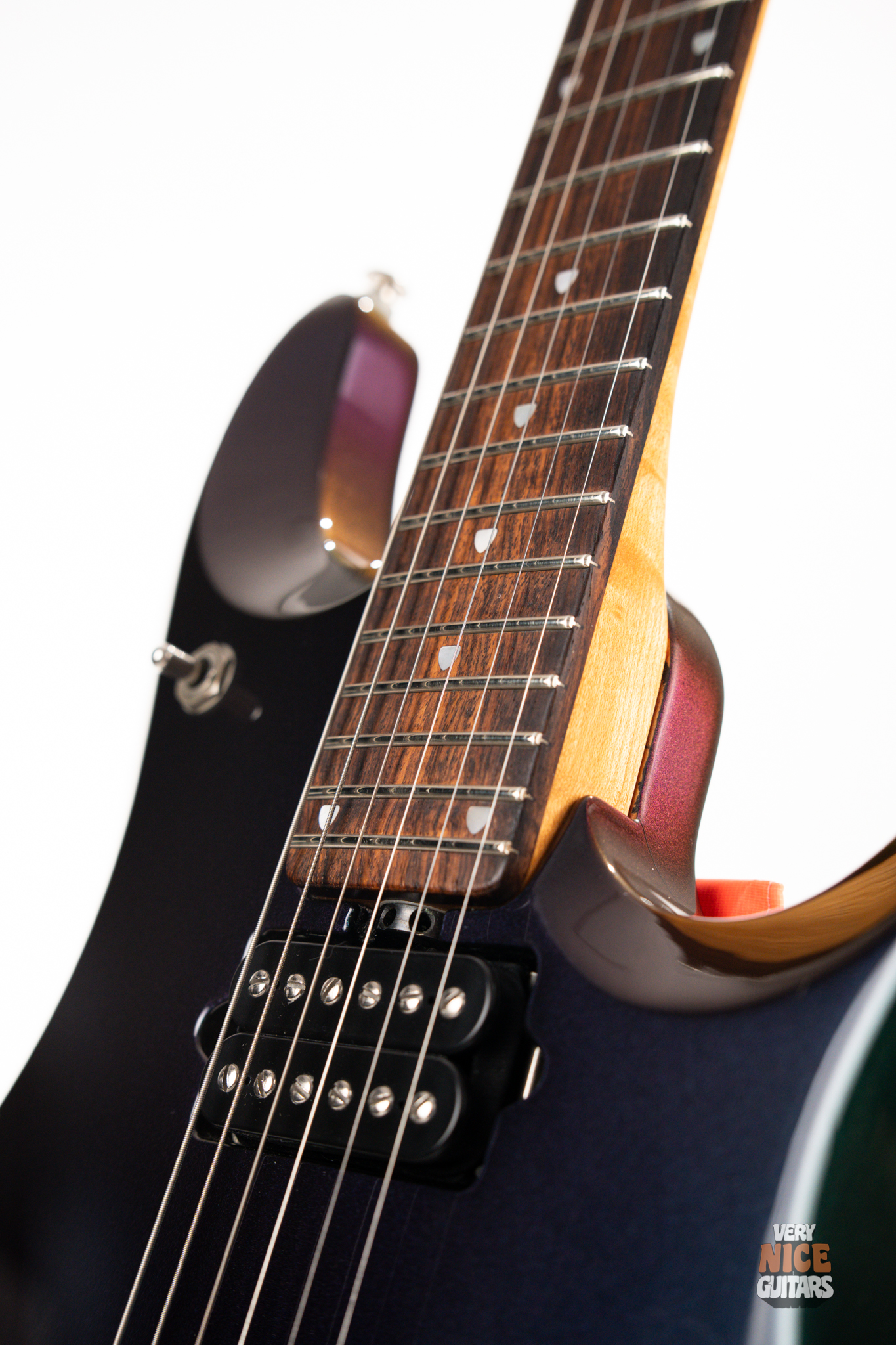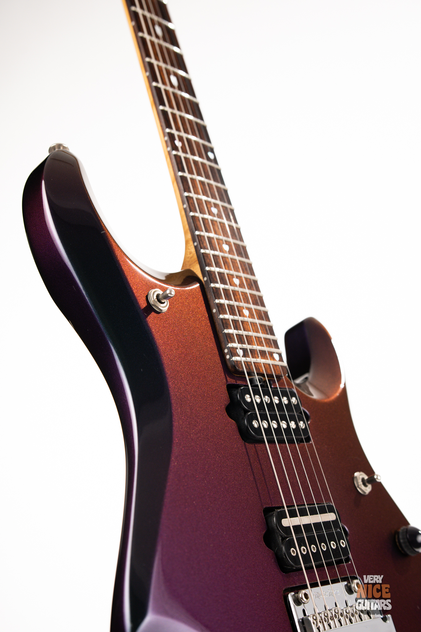The JP6 is already a cult classic, setting high standards for the modern players in the early 2000s by John Petrucci of legendary Dream Theater. JP6’s neck profile is known for its playability, while the lightweight, ergonomic body keeps you feeling great through long sessions. This particular guitar stands out with a beautifully figured Birdseye maple neck paired with a classic rosewood fretboard. Under the hood you get a DiMarzio set, Rainmaker in the neck position and Crunch Lab in the bridge. They deliver crystal-clear articulation for soaring leads, along with the punch and depth needed for tight, powerful rhythm work both for clean tones or when pushing into high-gain territory. To expand its tonal abilities it was fitted with the outstanding piezo system, giving you acoustic-like tones right alongside your electric sound. And to top it off, the Mystic Dream finish looks incredible under any light and angle, changing its color from purple to green with a deep sparkle.