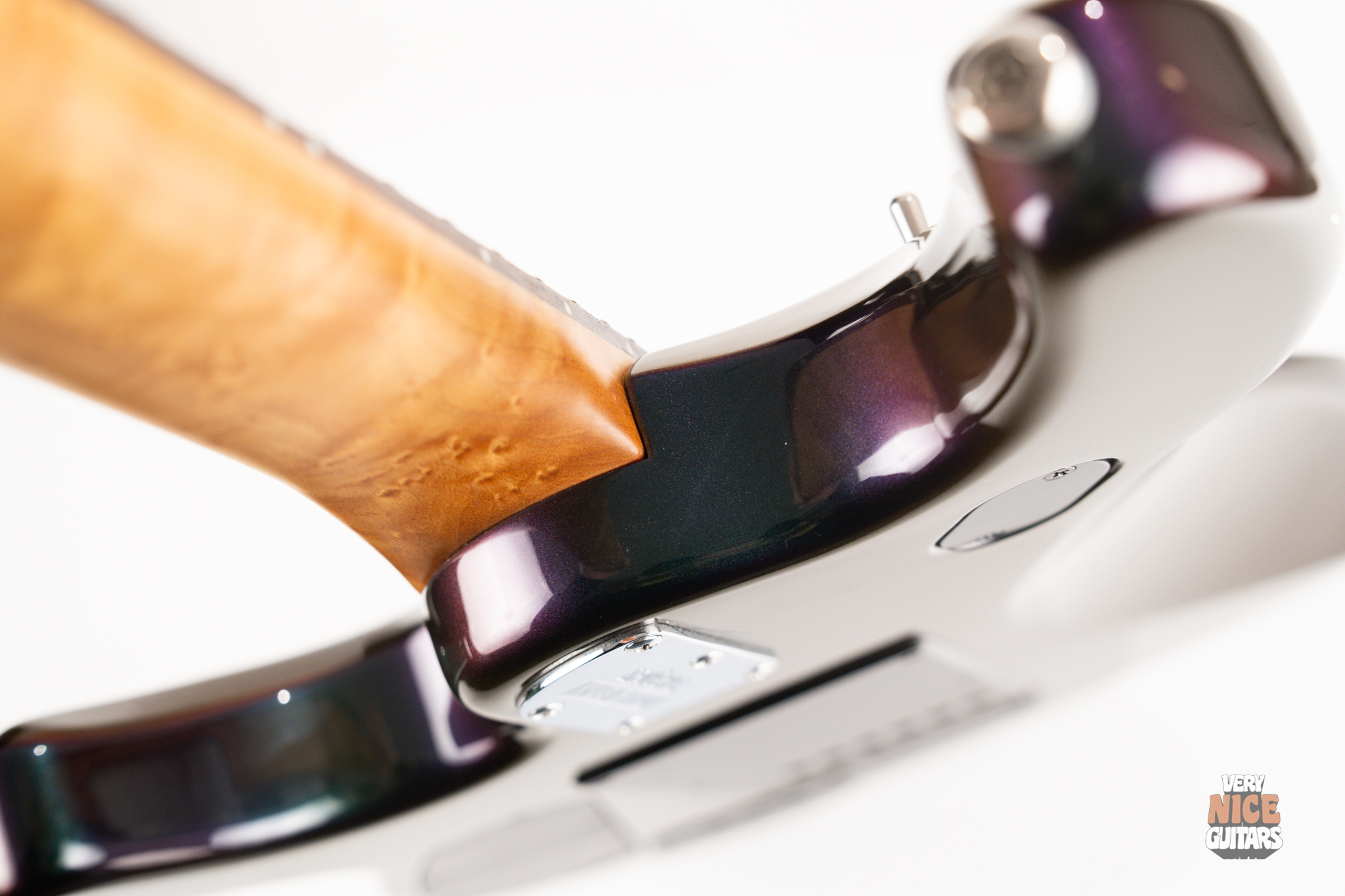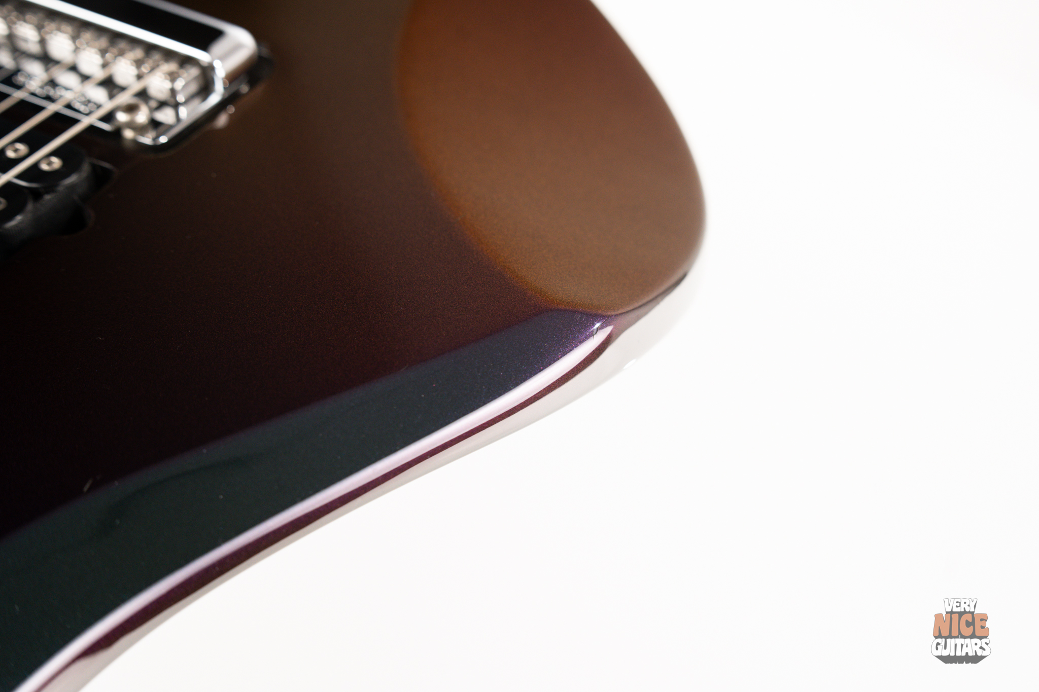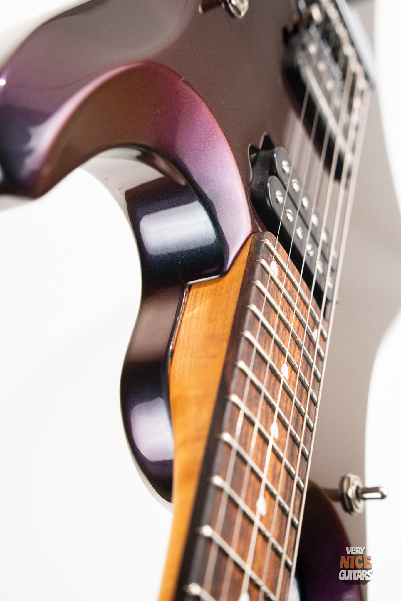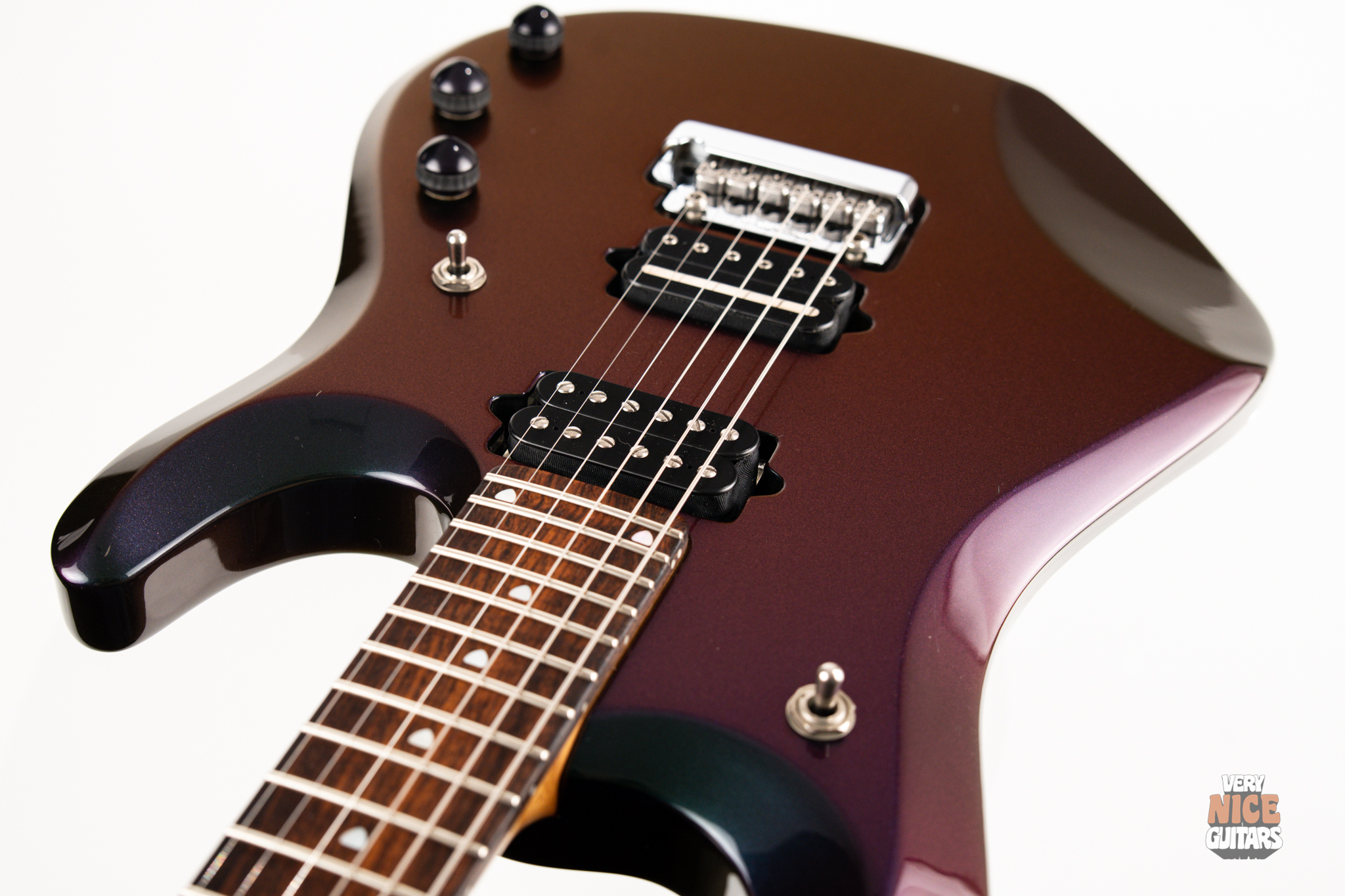 The JP6 is already a cult classic, setting high standards for the modern players in the early 2000s by John Petrucci of legendary Dream Theater. JP6’s neck profile is known for its playability, while the lightweight, ergonomic body keeps you feeling great through long sessions. This particular guitar stands out with a beautifully figured Birdseye maple neck paired with a classic rosewood fretboard. Under the hood you get a DiMarzio set, Rainmaker in the neck position and Crunch Lab in the bridge. They deliver crystal-clear articulation for soaring leads, along with the punch and depth needed for tight, powerful rhythm work both for clean tones or when pushing into high-gain territory. To expand its tonal abilities it was fitted with the outstanding piezo system, giving you acoustic-like tones right alongside your electric sound. And to top it off, the Mystic Dream finish looks incredible under any light and angle, changing its color from purple to green with a deep sparkle.