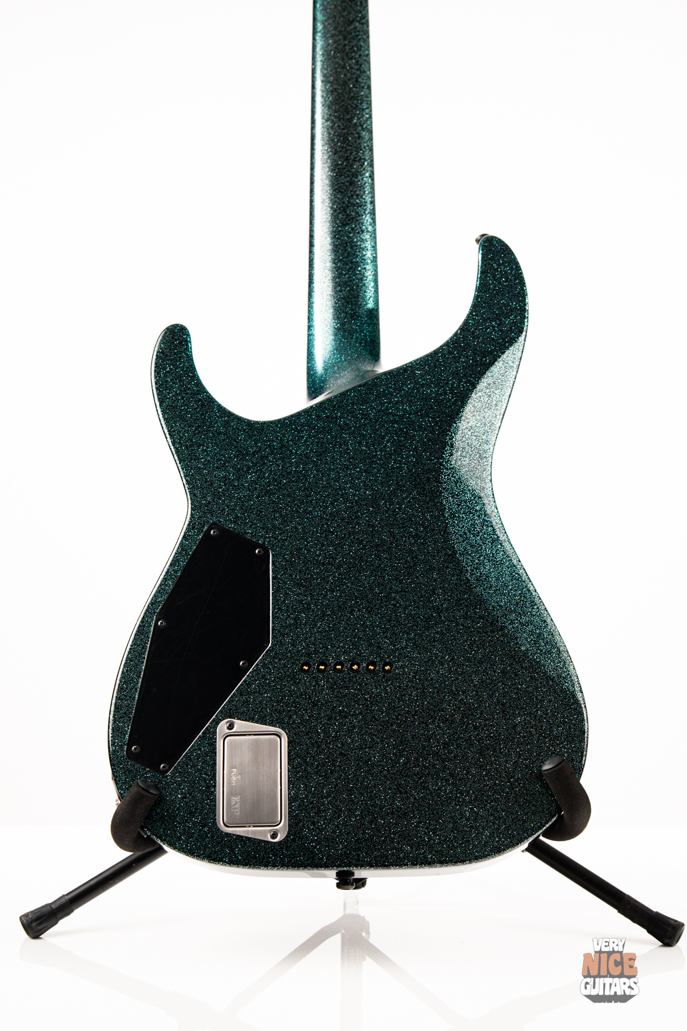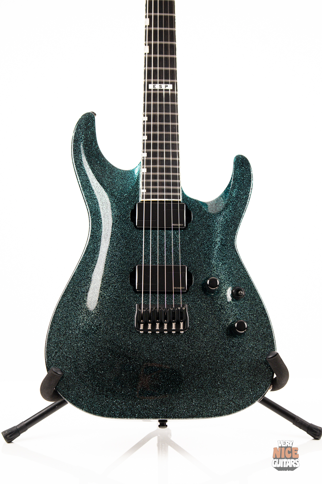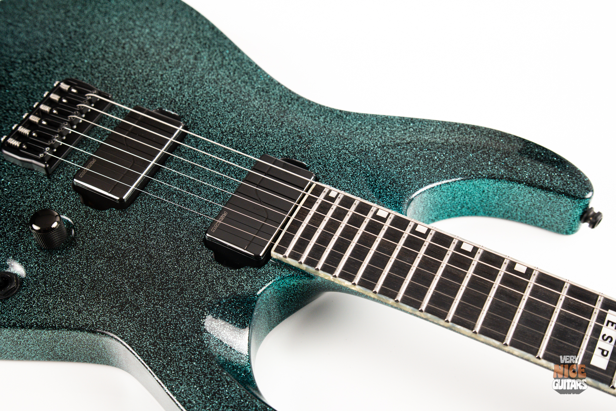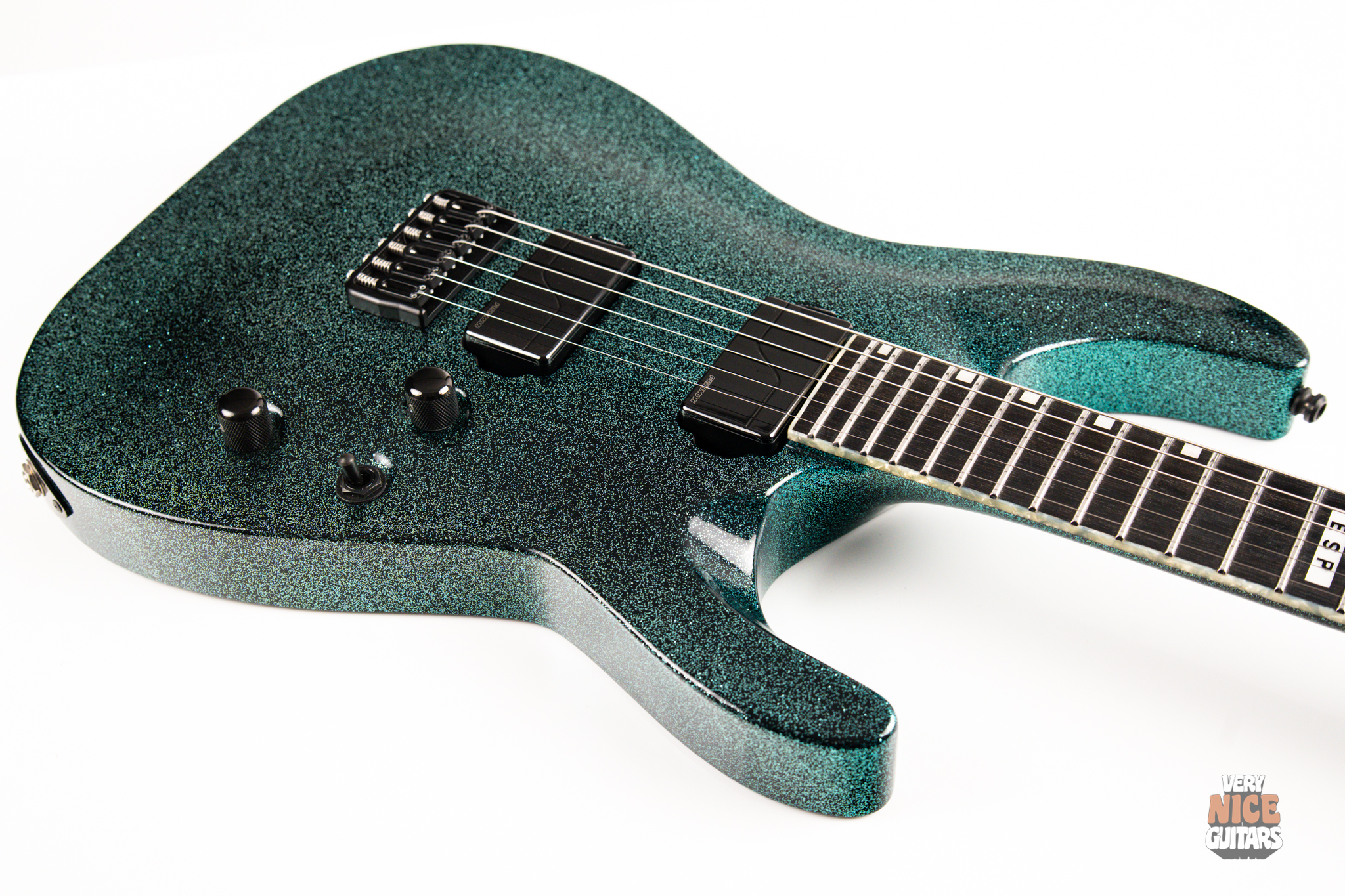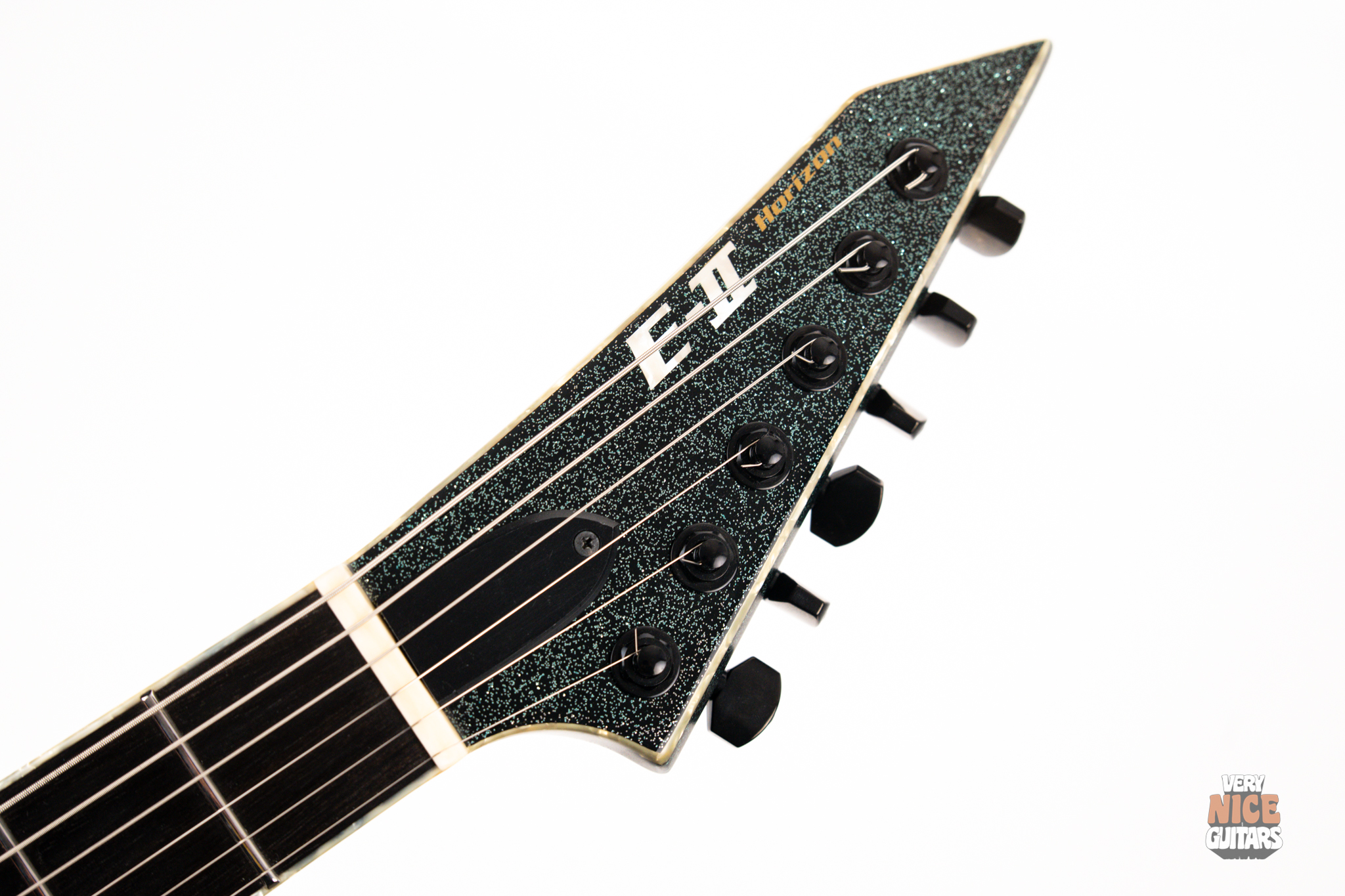 This incredibly eye-catching, made in Japan E-II Horizon is made of alder with a 3 piece maple neck with a neck-through construction. The neck is satin finished for more comfortable playing. Its fingerboard is made of ebony with a beautiful pearl binding and 24 jumbo frets. Bridge is a Hipshot hardtail with string-through paired with locking Gotoh SG360-07 MG-T tuners on a reverse headstock. Under the hood of this beast there is a matching pair of Fishman Fluence Modern pickups, Alnico in the neck and Ceramic in the bridge. To control this setup you get a simple 3 way switch, master volume with push/pull for voice chance and a master tone. Top top it all of this guitar features an incredible looking Granite Sparkle finish.