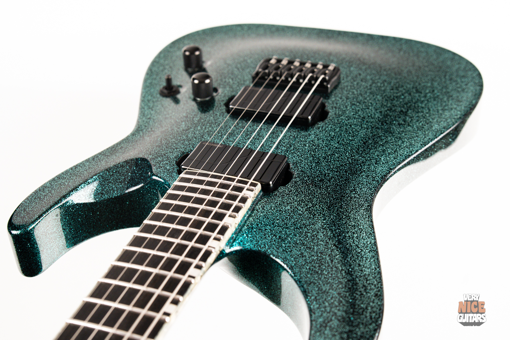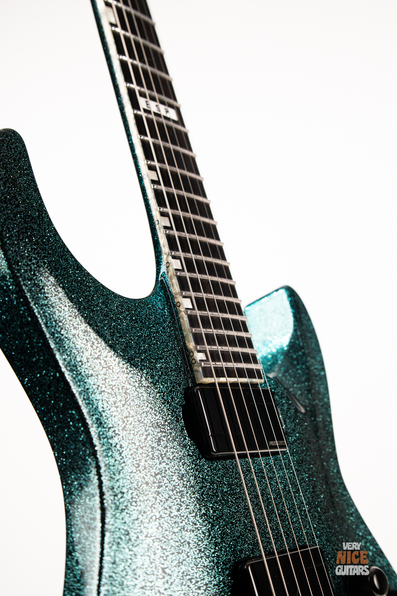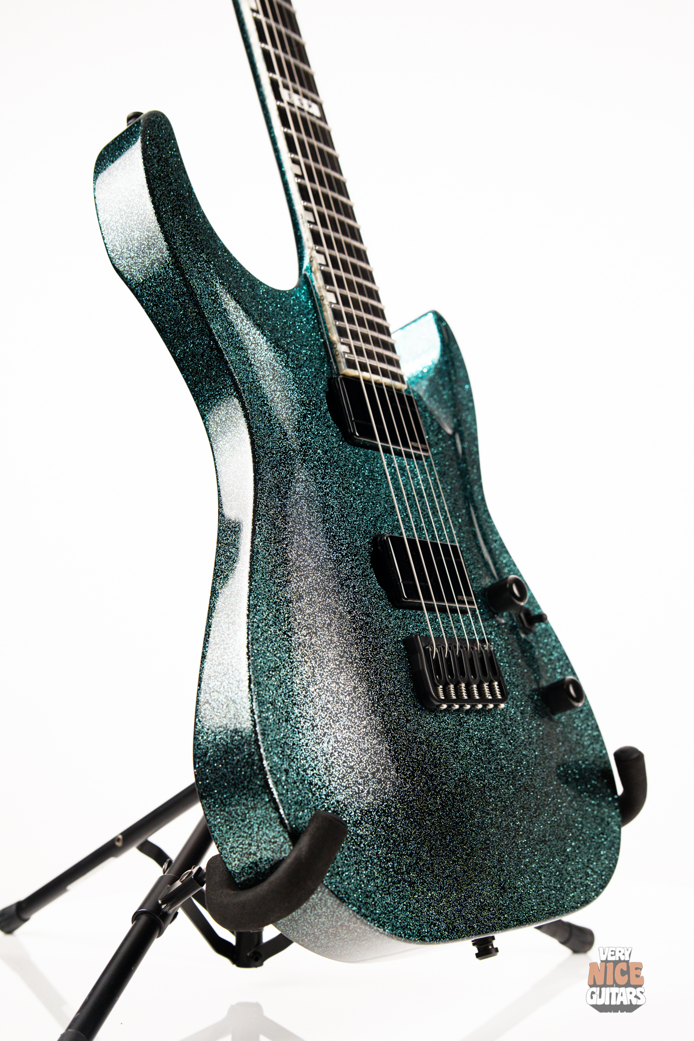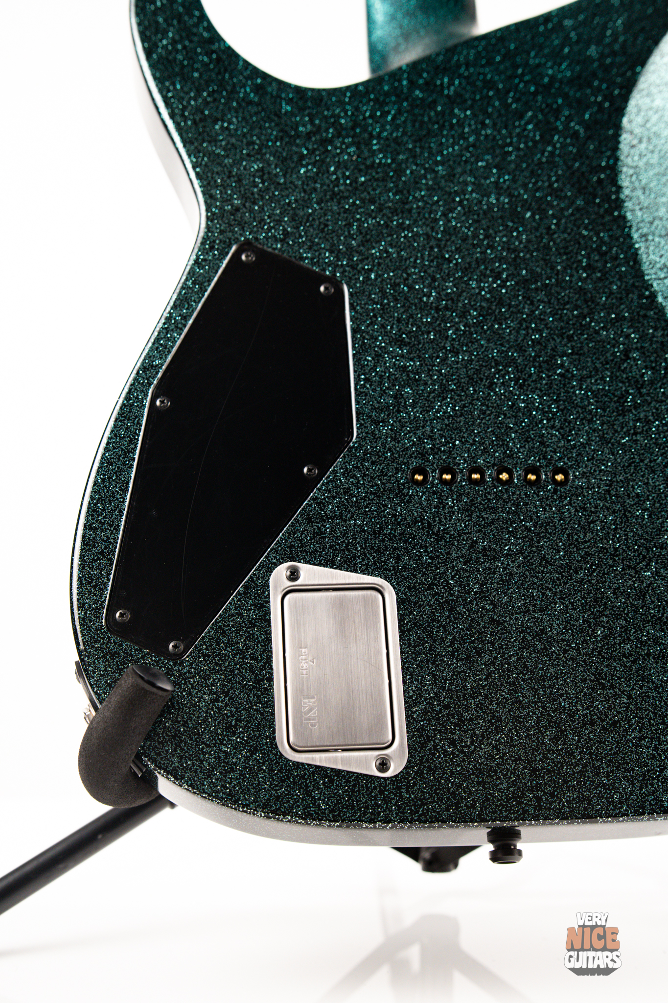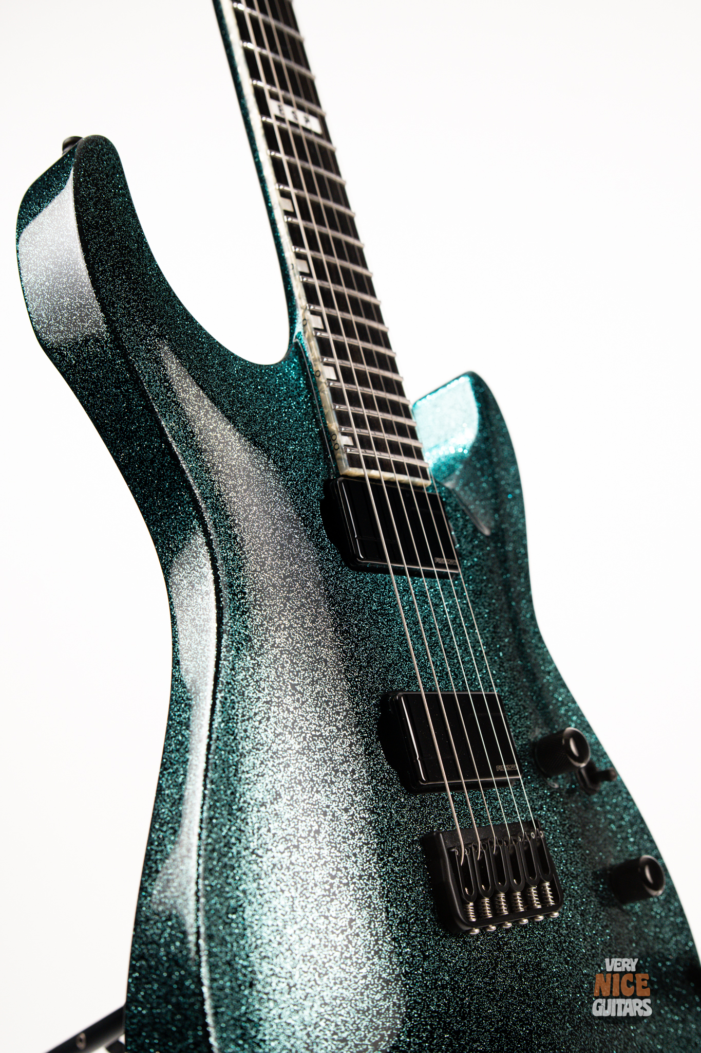This incredibly eye-catching, made in Japan E-II Horizon is made of alder with a 3 piece maple neck with a neck-through construction. The neck is satin finished for more comfortable playing. Its fingerboard is made of ebony with a beautiful pearl binding and 24 jumbo frets. Bridge is a Hipshot hardtail with string-through paired with locking Gotoh SG360-07 MG-T tuners on a reverse headstock. Under the hood of this beast there is a matching pair of Fishman Fluence Modern pickups, Alnico in the neck and Ceramic in the bridge. To control this setup you get a simple 3 way switch, master volume with push/pull for voice chance and a master tone. Top top it all of this guitar features an incredible looking Granite Sparkle finish.