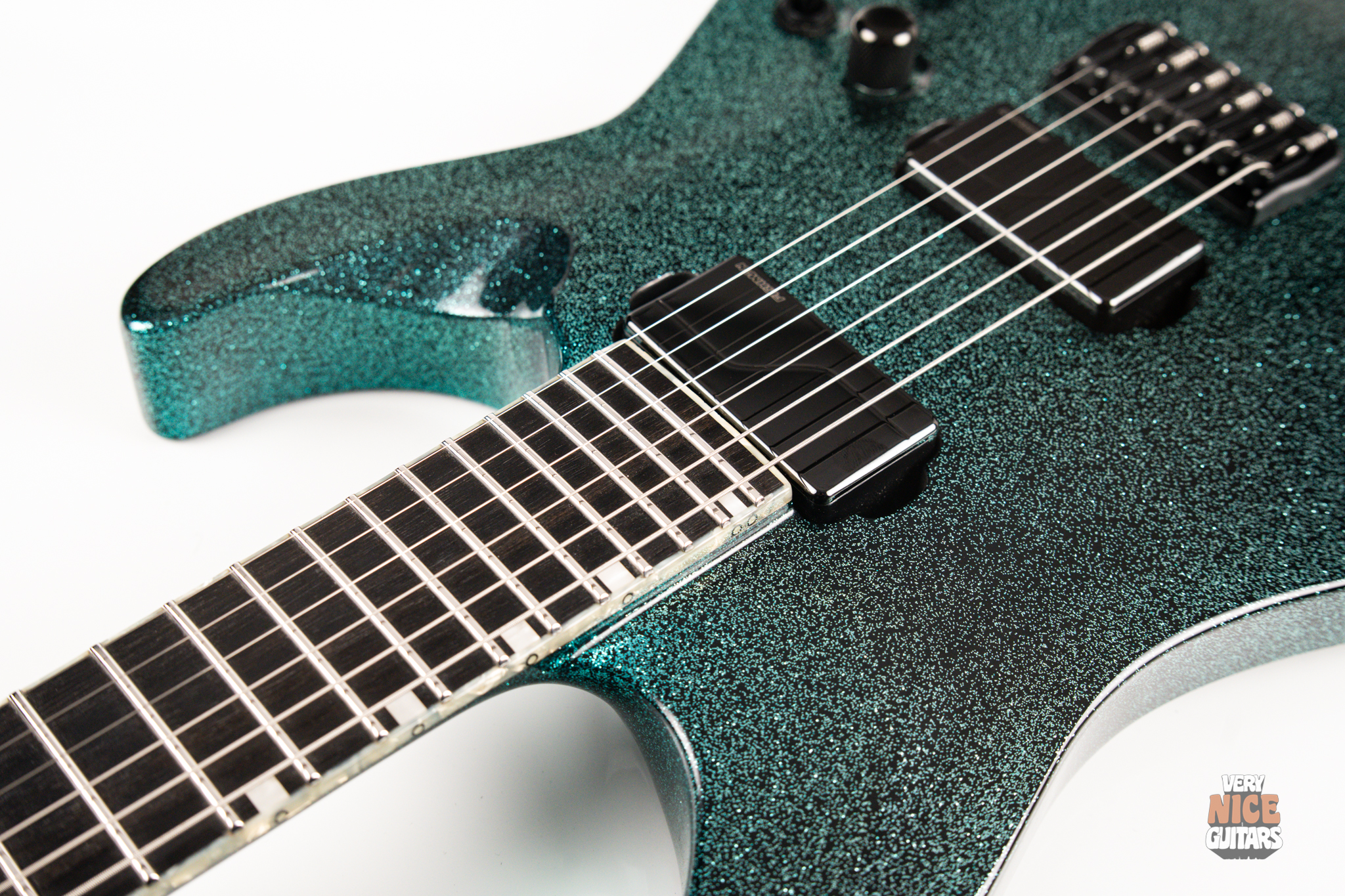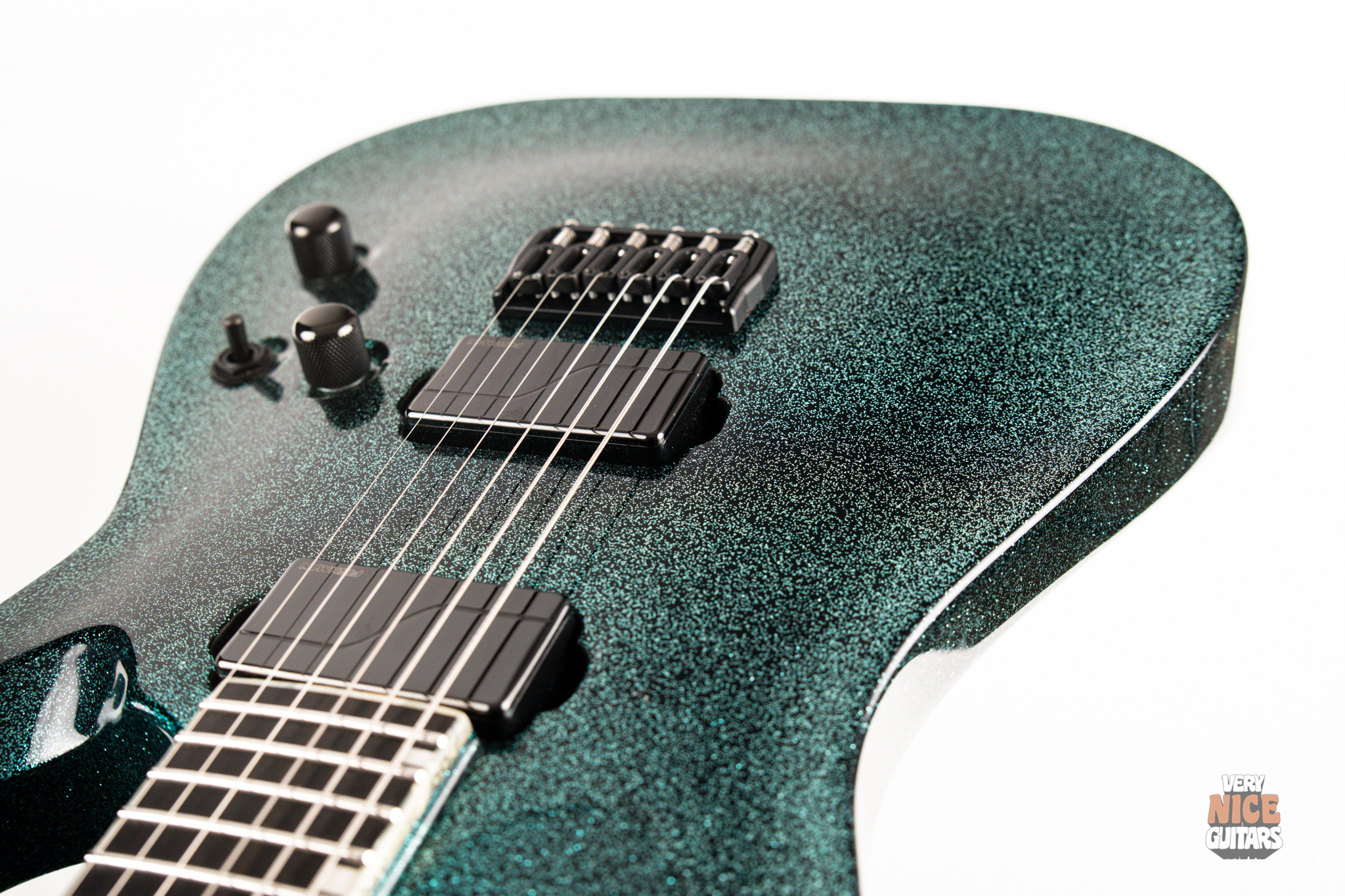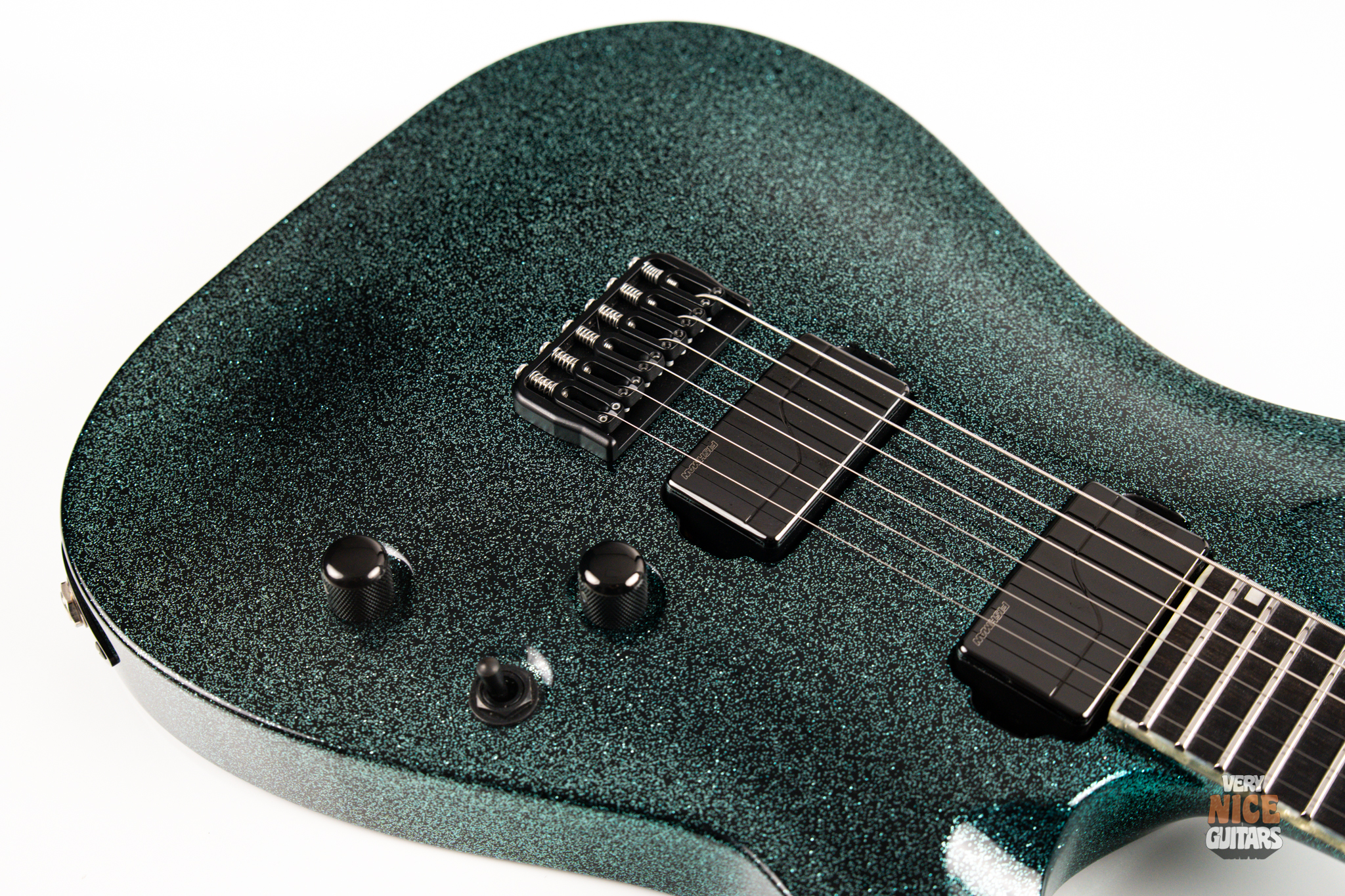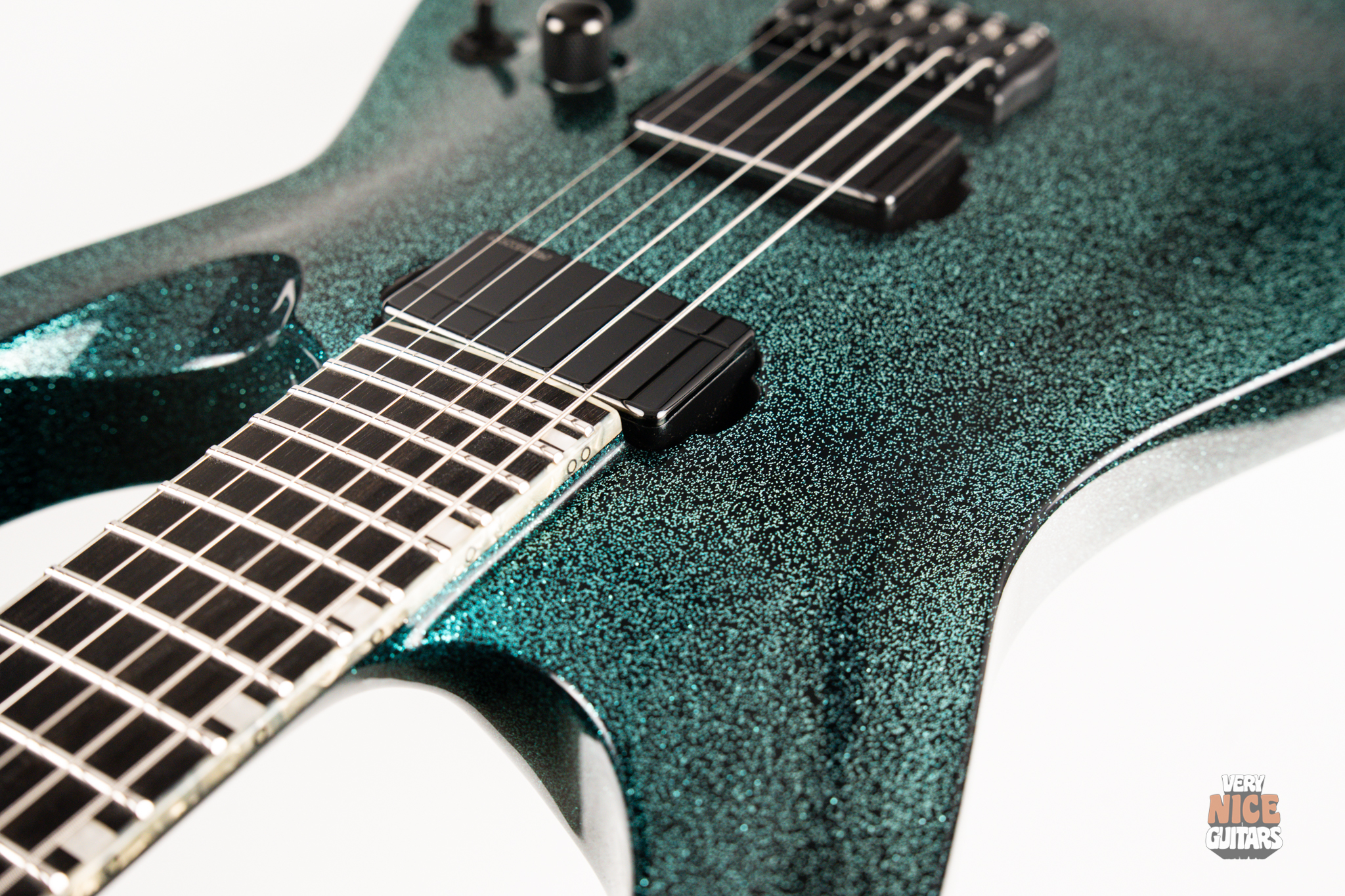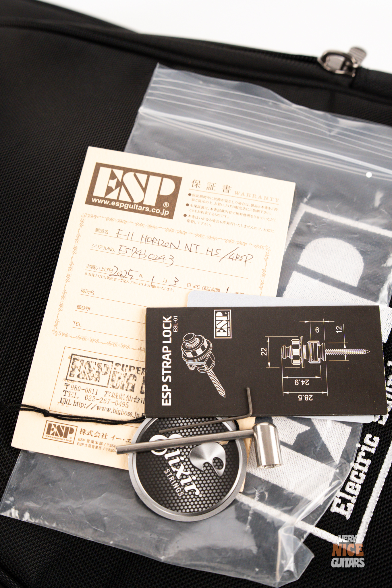 This incredibly eye-catching, made in Japan E-II Horizon is made of alder with a 3 piece maple neck with a neck-through construction. The neck is satin finished for more comfortable playing. Its fingerboard is made of ebony with a beautiful pearl binding and 24 jumbo frets. Bridge is a Hipshot hardtail with string-through paired with locking Gotoh SG360-07 MG-T tuners on a reverse headstock. Under the hood of this beast there is a matching pair of Fishman Fluence Modern pickups, Alnico in the neck and Ceramic in the bridge. To control this setup you get a simple 3 way switch, master volume with push/pull for voice chance and a master tone. Top top it all of this guitar features an incredible looking Granite Sparkle finish.