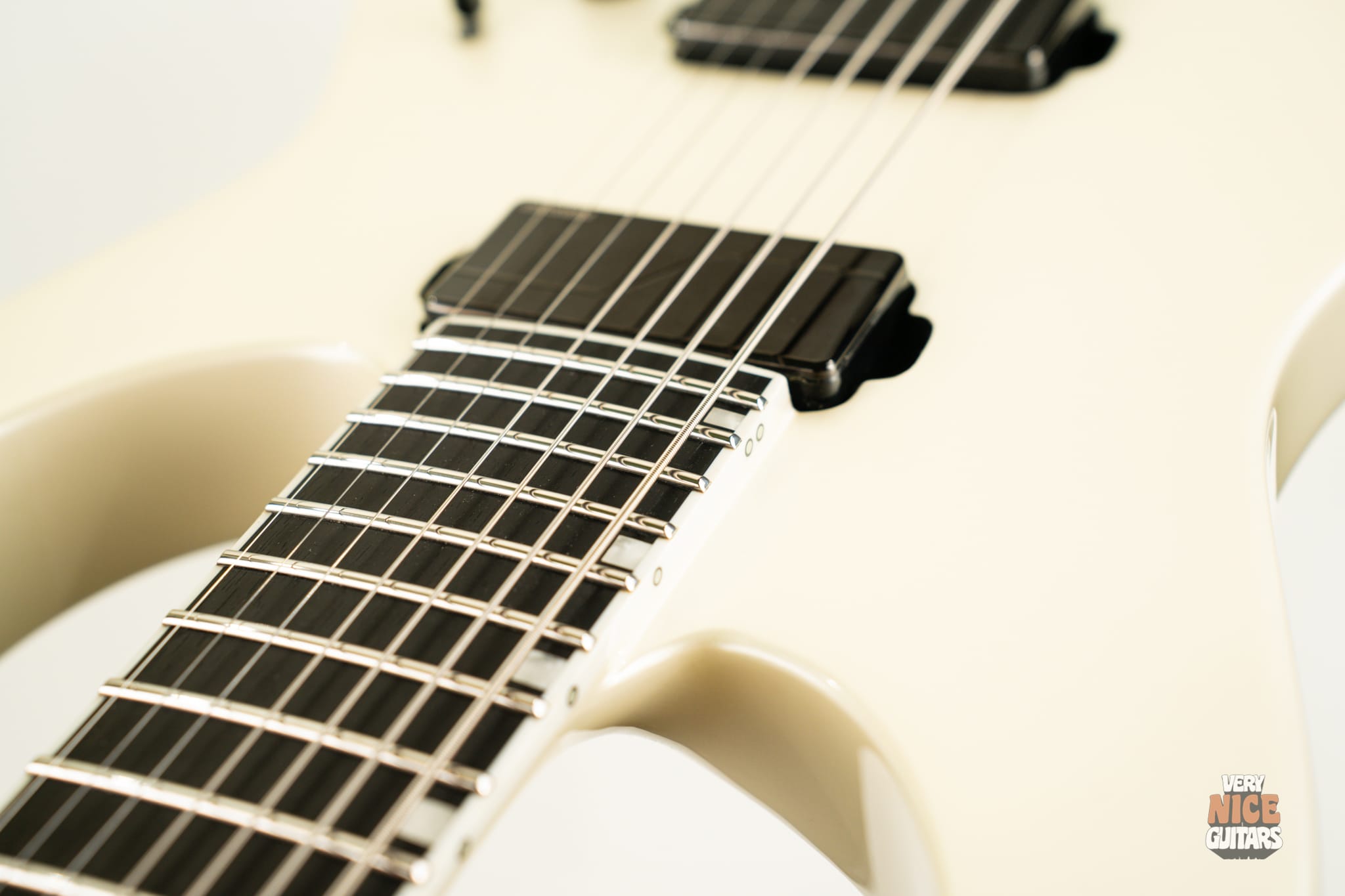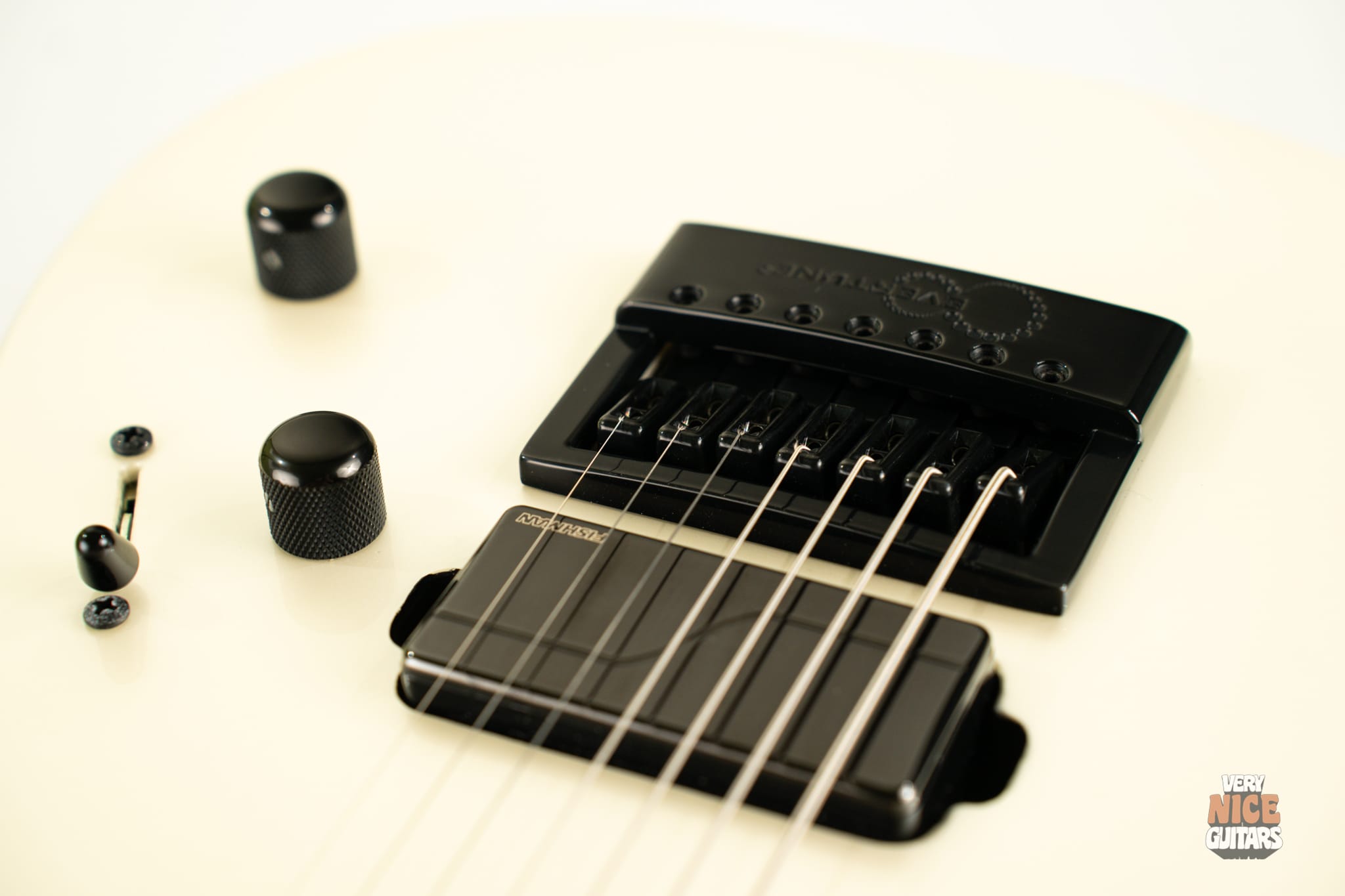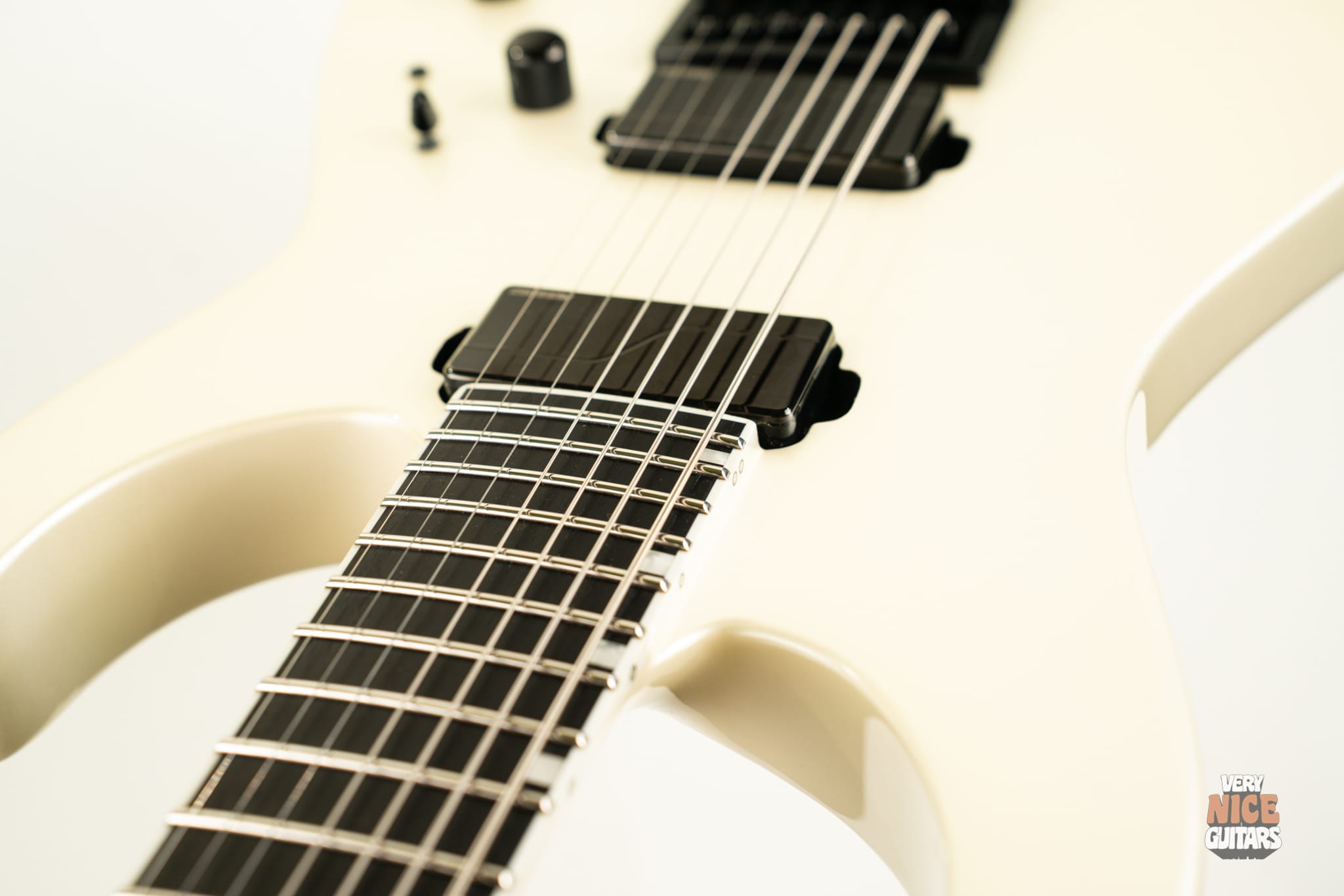 If you’re into minimalist aesthetics but still want all the modern features modern guitars have to offer, this axe is definitely for you. The 27-inch baritone scale lets you downtune without sacrificing string tension – perfect for players who live in the lower registers. With neck-through construction and a time-tested combination of alder and maple for the body and neck, you get a bright, aggressive tone that’s a staple in modern metal. The Thin U neck profile paired with a slick ebony fretboard delivers a fast-playing, comfortable feel ideal for technical riffs and solos. Tuning stability is top-tier, in addition, Evertune ensures your notes stay in tune regardless of how hard you hit the strings, eliminating the usual tuning fluctuations between attack and sustain. The Fishman Fluence Modern pickups offer incredible clarity and note separation – whether you’re playing clean passages or chugging through heavy, high-gain distortion.