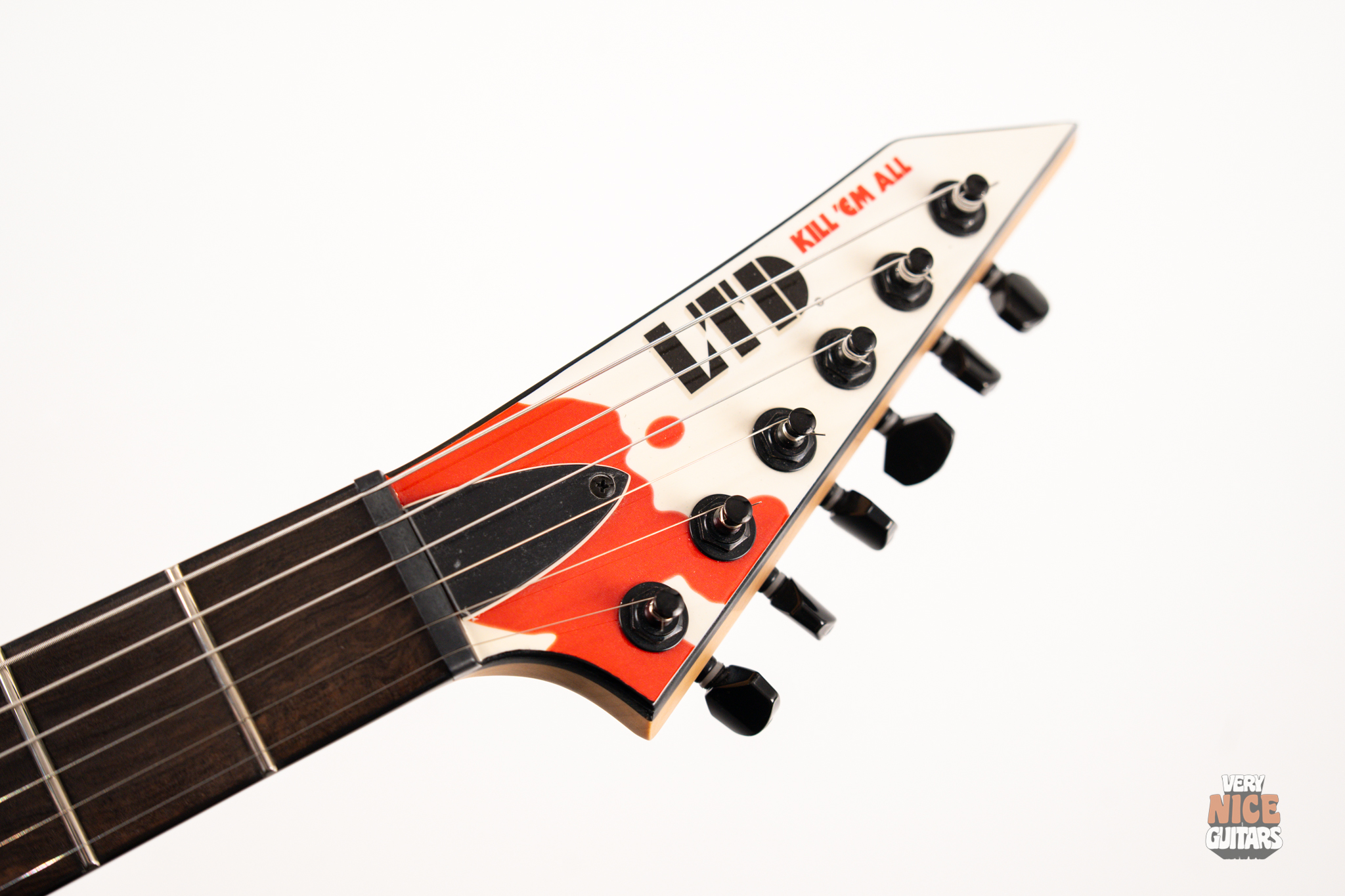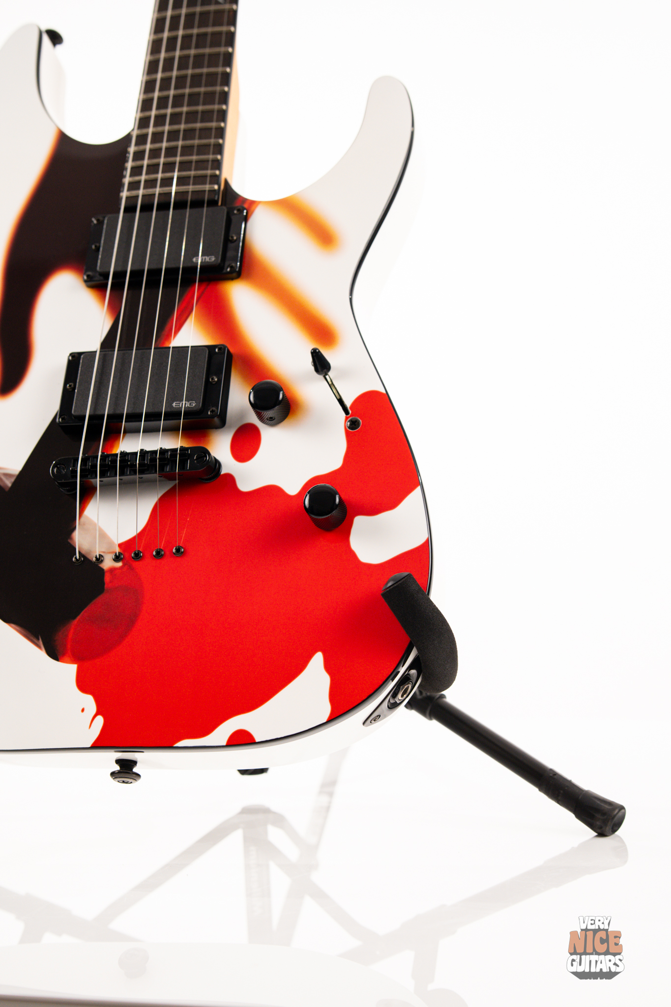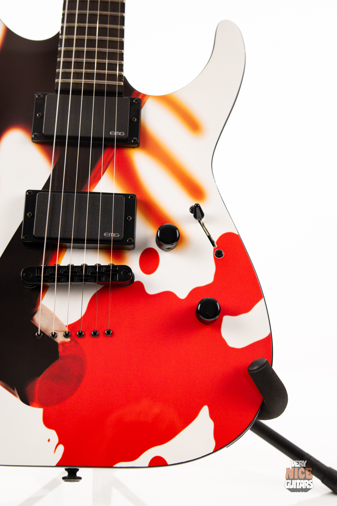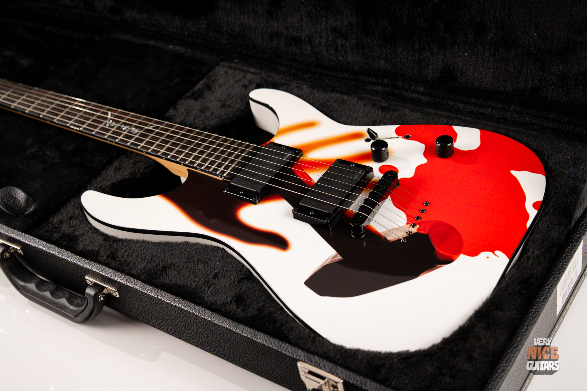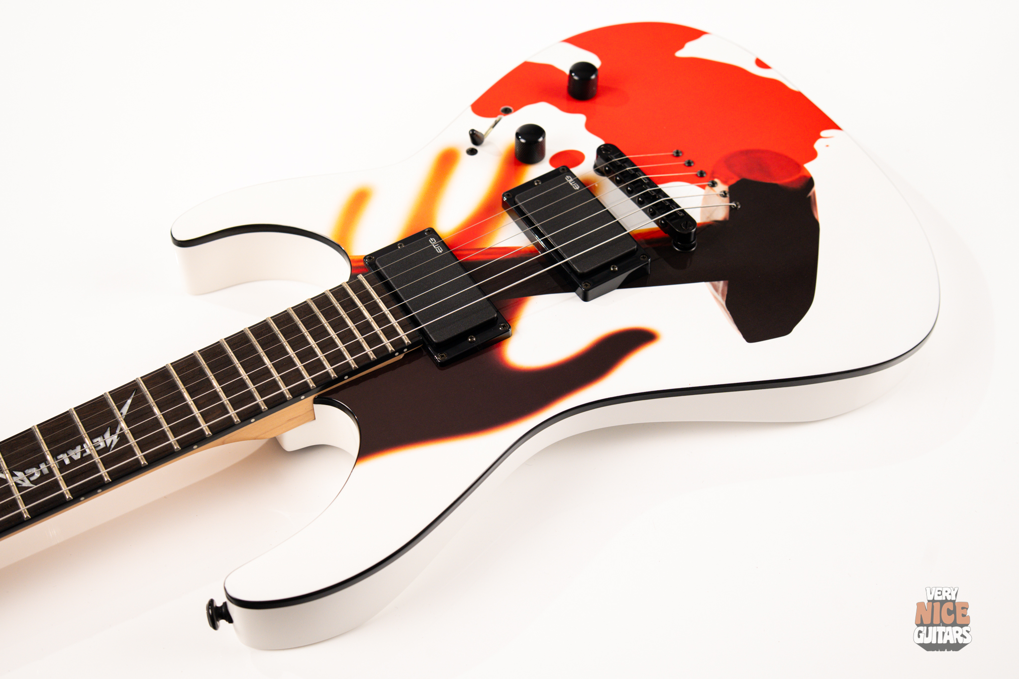 Metallica fans, rejoice! Beyond its wild visuals that pay homage to the legendary Kill ’Em All album, this guitar is, at its core, a modern Superstrat built for performance. It features a bolt-on neck construction, a sleek ebony fretboard with a custom Metallica inlay, and a lightweight alder body paired with a super-comfy C-shaped neck. Loaded with an EMG 81 set of active pickups, this axe is built to tear through your favorite Metallica riffs and solos with precision and power. Don’t be fooled by its collector’s status – this guitar is ready to perform and record, whether on stage or in the studio.