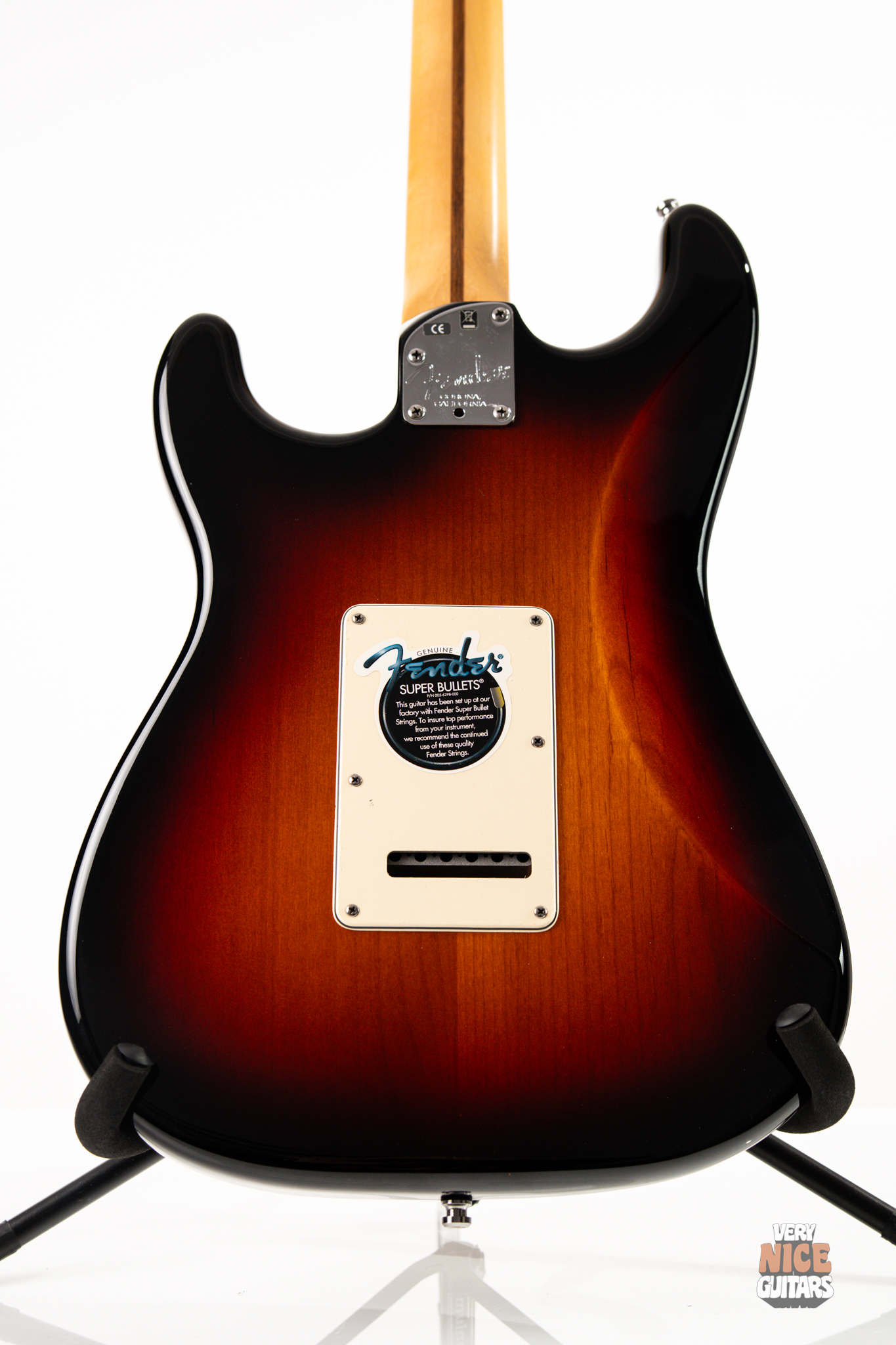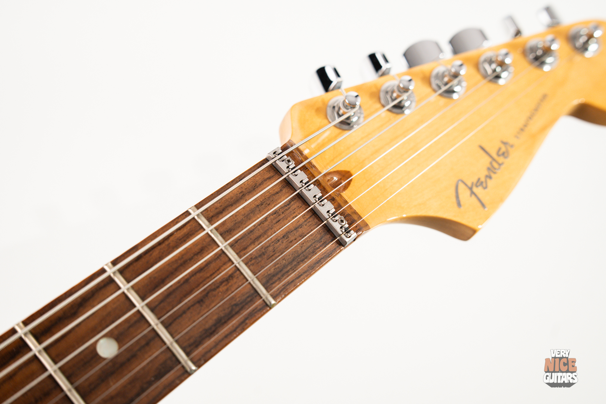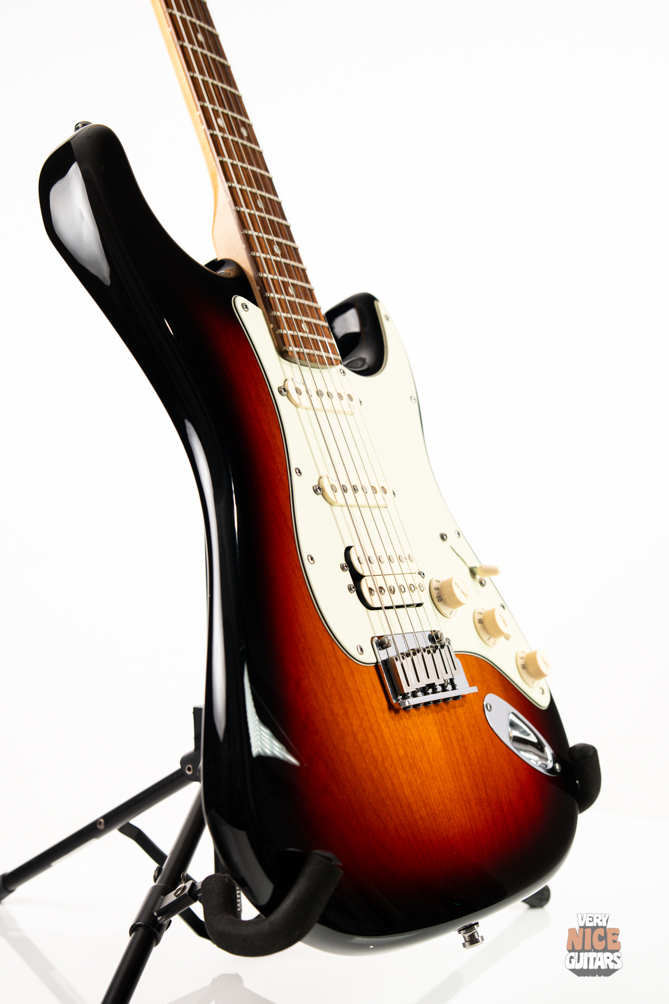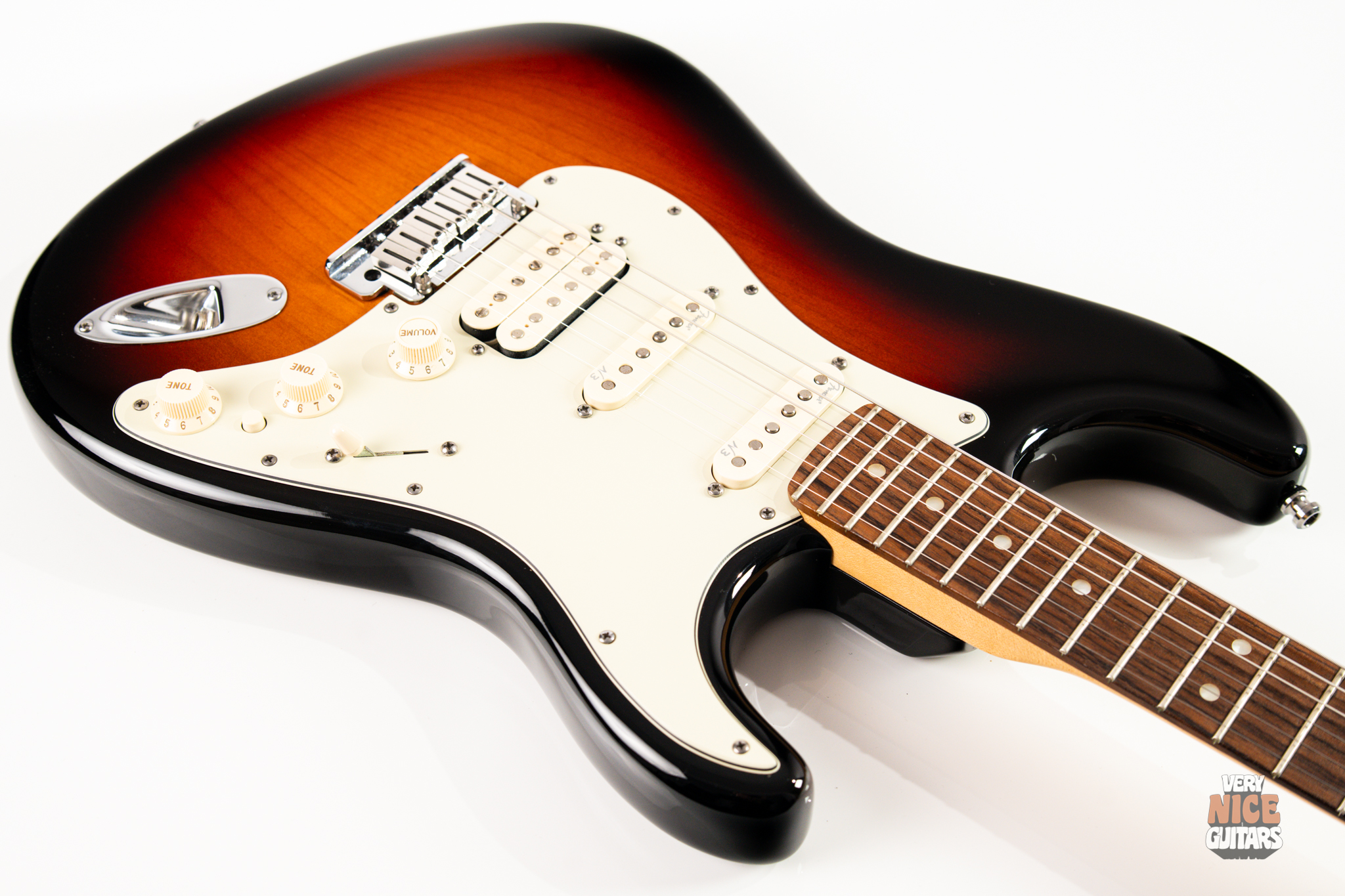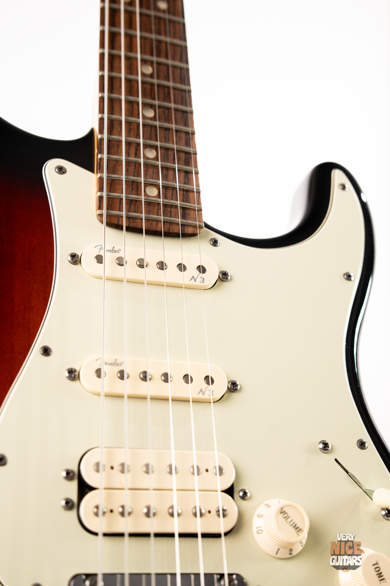 This American Deluxe Strat merges two worlds of traditional design and modern, sophisticated features. Alder body finished in 3 tone sunburst and a maple neck with rosewood fingerboard are things you’d expect to see on a regular strat but what’s under the hood is more special. Deluxe Synchronised Tremolo, LSR Roller nut and locking tuners provide ultimate tuning stability even with an extensive tremolo use. The sweet sounding set of HSS pickups consists of two Noiseless N3 single coils in the neck and middle position and a powerful Atomic Humbucking pickup in the bridge. The controls are master volume with an S-1 Switch, tone for the neck and tone for the middle and bridge pickups.