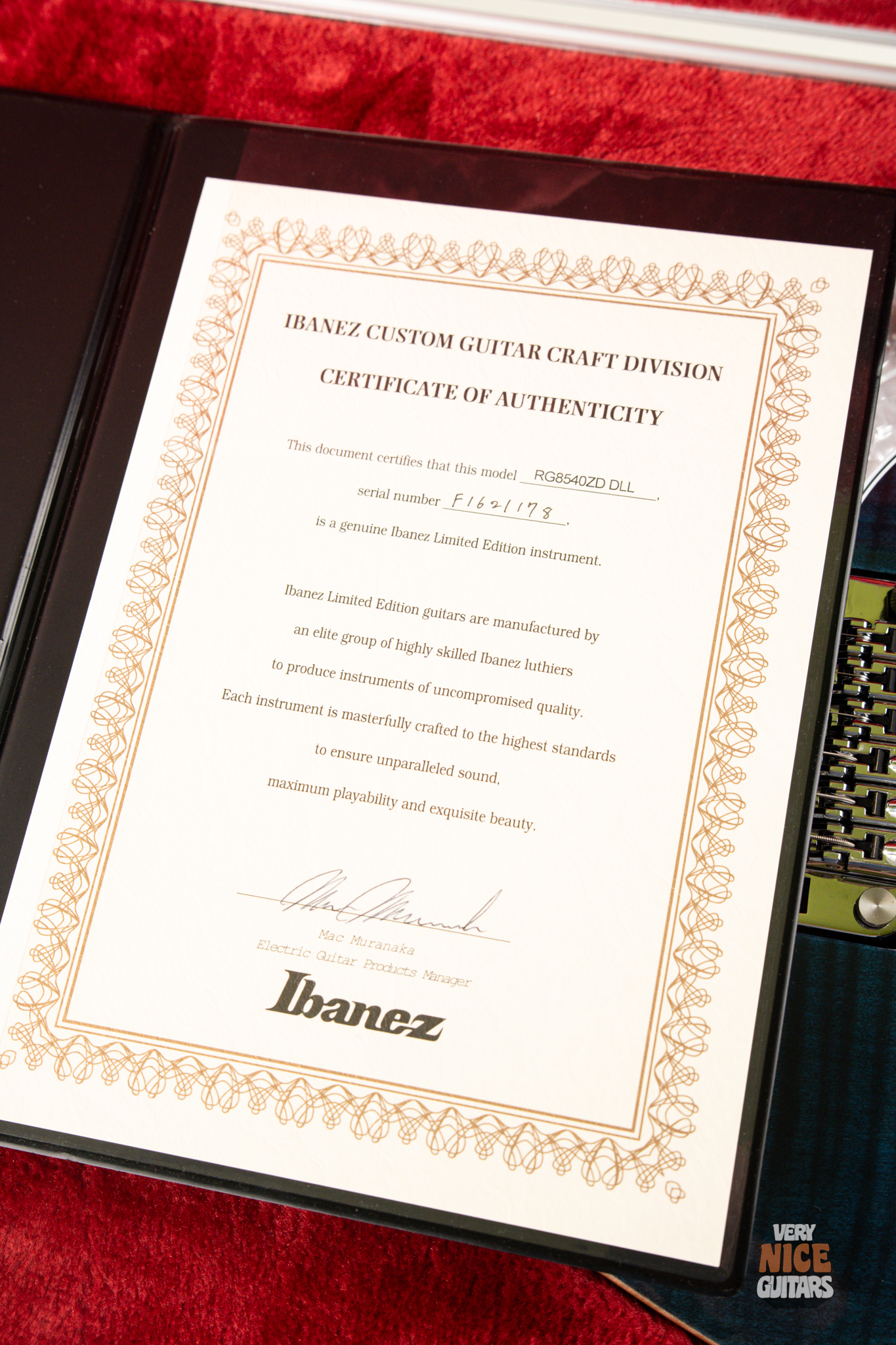 Includes: Original hardshell case, Certificate of Authenticity, Truss rod wrench, Ibanez sticker, Tremolo arm, tags.