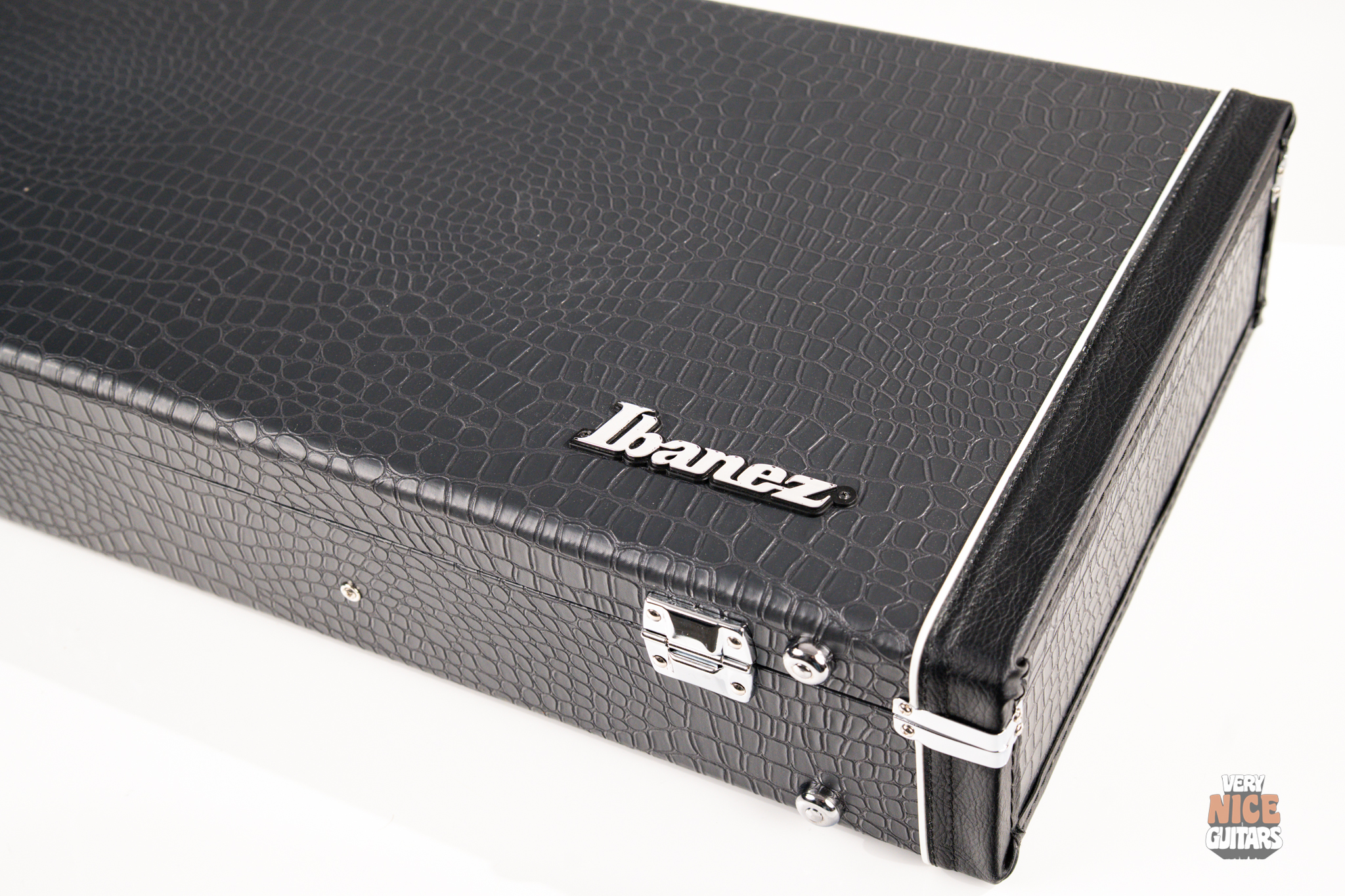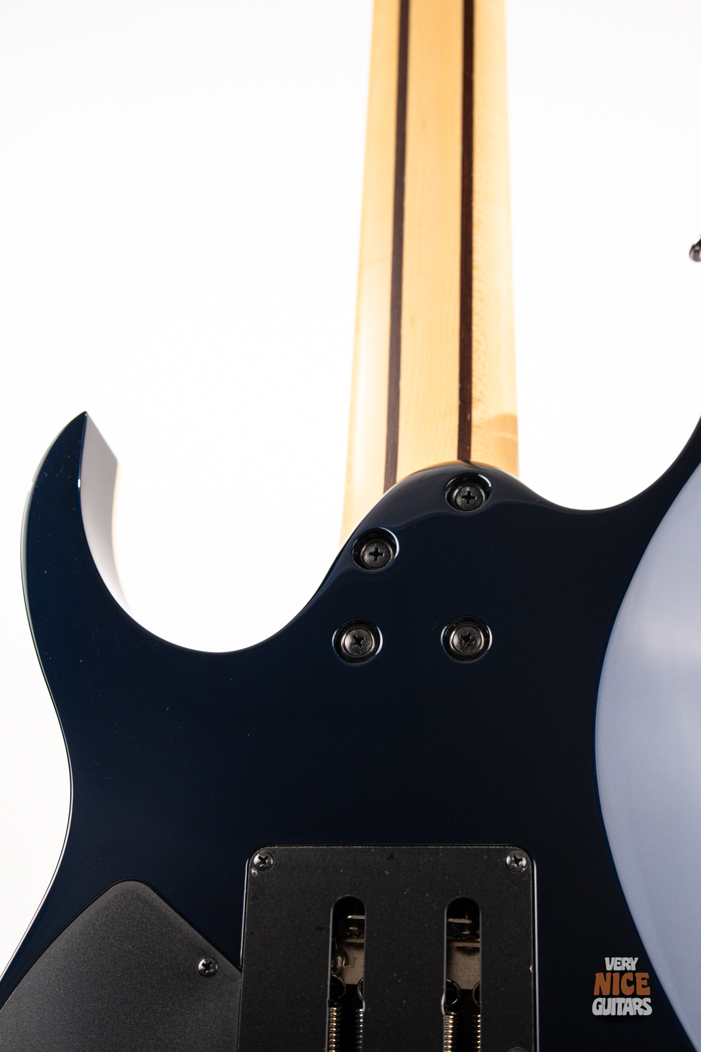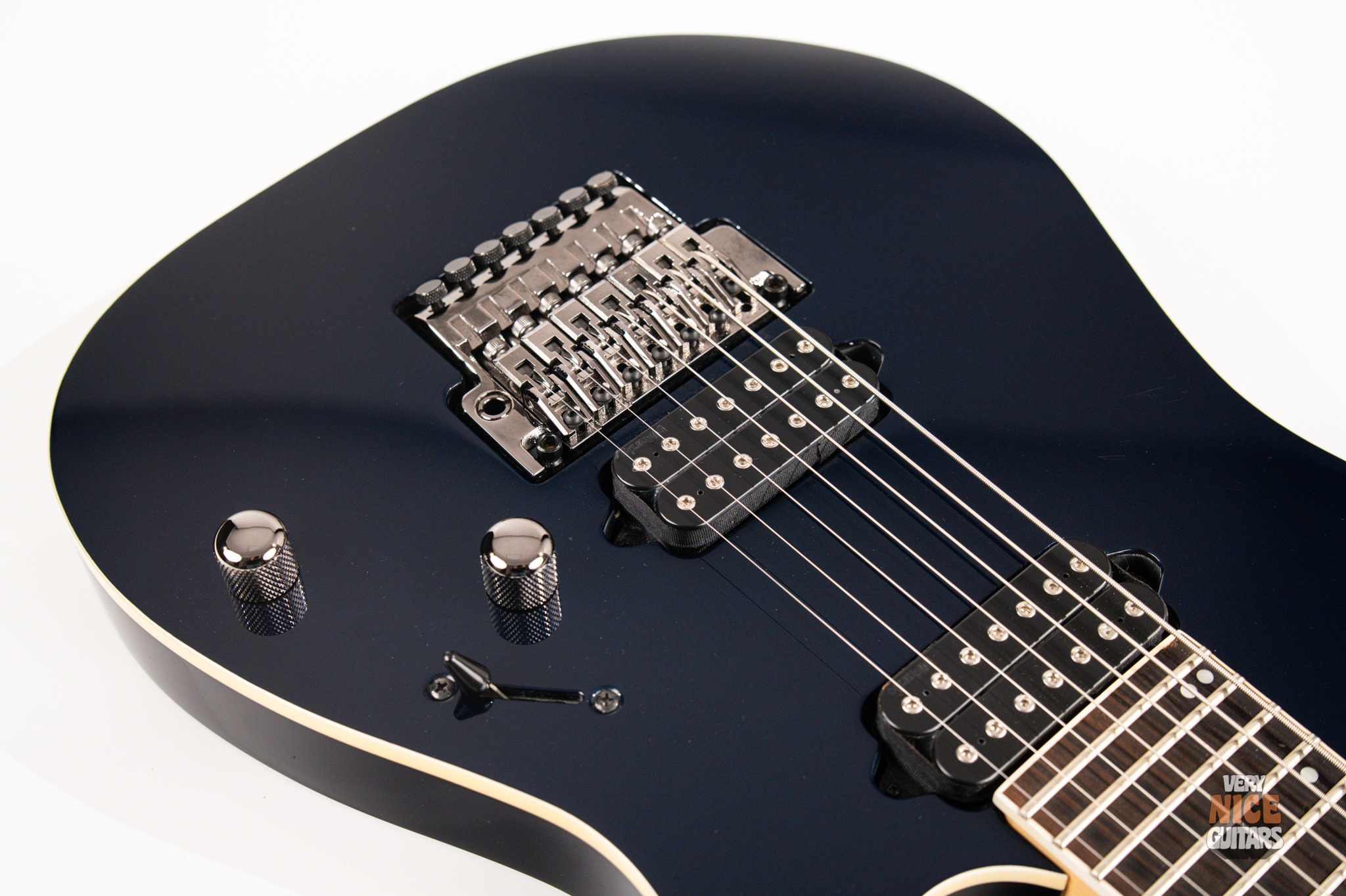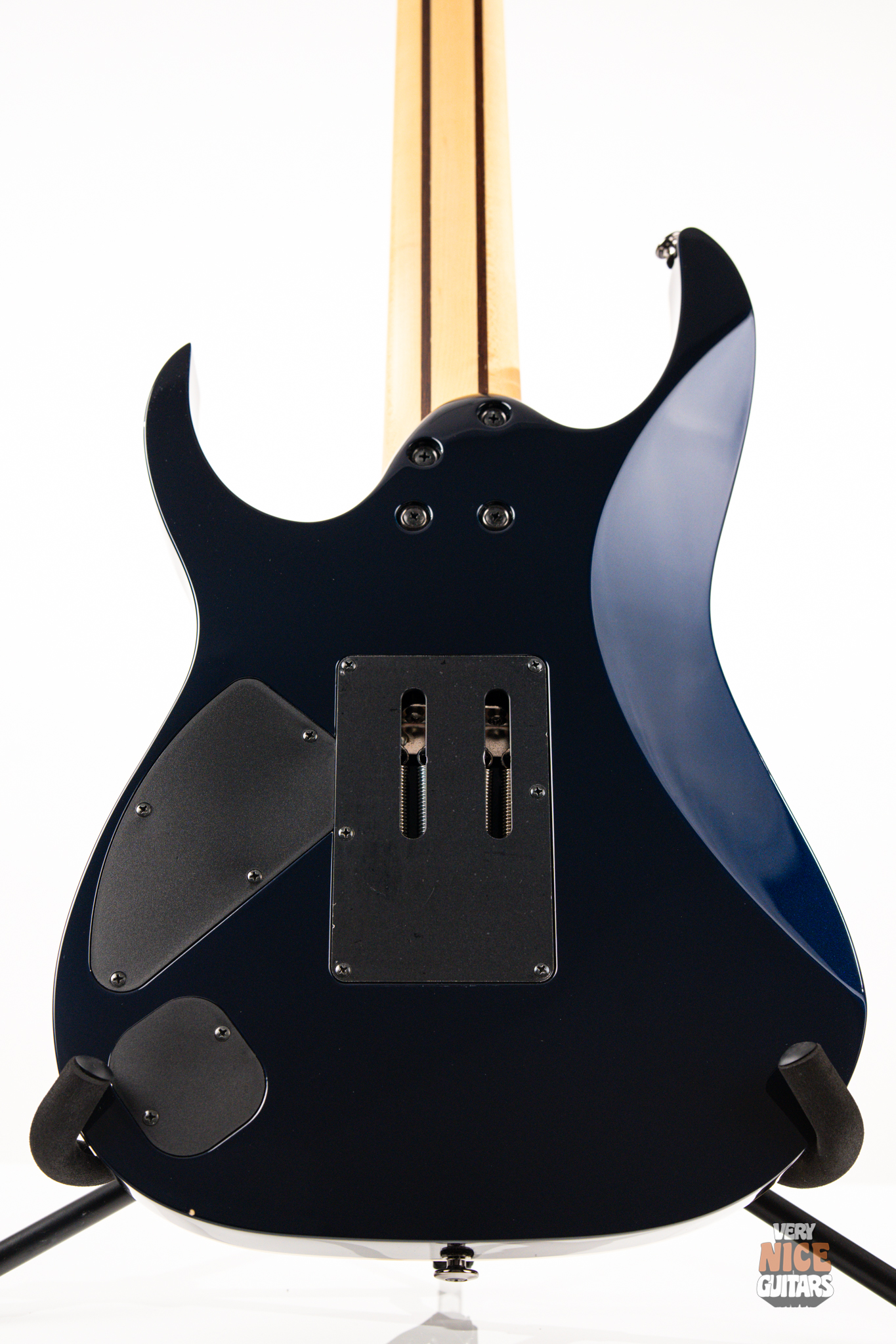 This Japanese-made RG features a basswood body and a five-piece maple and wenge neck with an XL scale of 27”. A macassar ebony fretboard features 24 frets with prestige edge treatment. Electronics consist of a pair of DiMarzio Fusion Edge 7 humbuckers, delivering clear, articulate, and versatile tones. A five-way selector switch provides additional tonal options, including coil-split combinations for expressive in-between sounds. Hardware includes the ultra-stable Lo-Pro Edge 7 double-locking tremolo, a locking nut, and Gotoh SG381 tuning machines, all working together to maintain precise tuning stability.