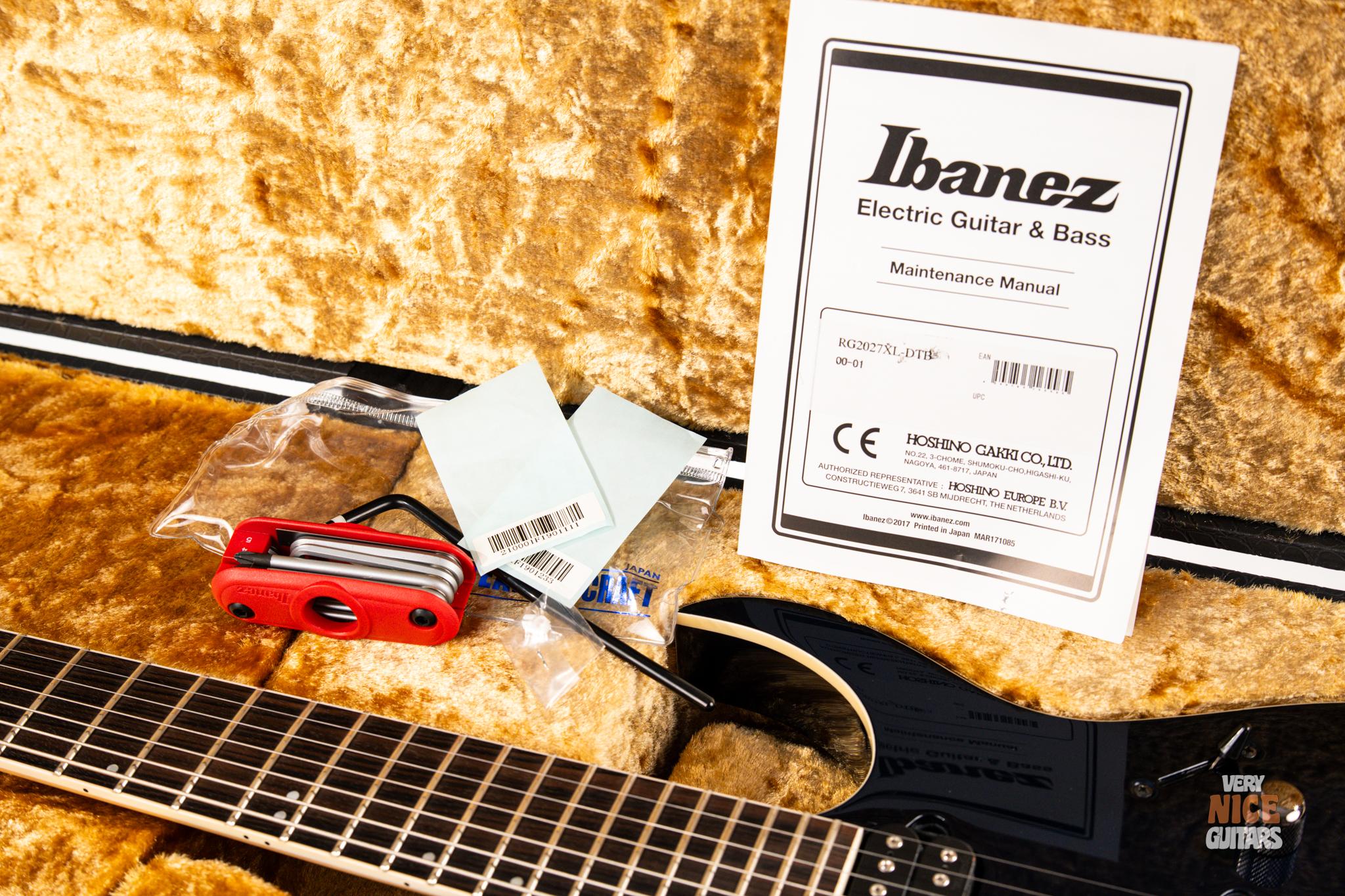 Includes: Original hard shell case (check it out! looks great), tremolo arm, manual and multitool.