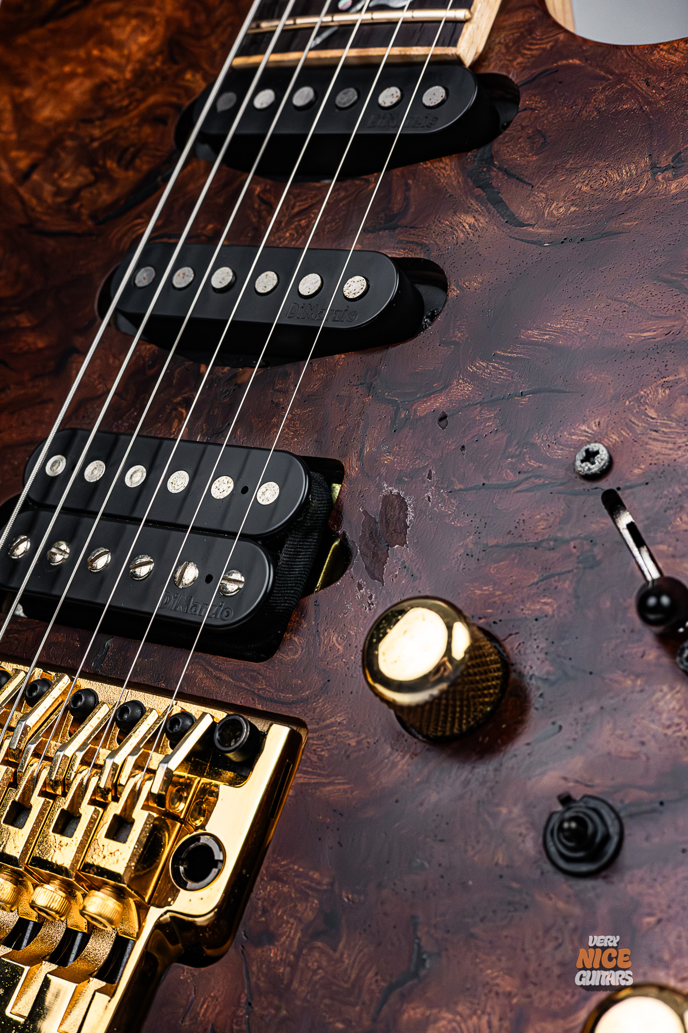 • Pickups: DiMarzio Black Velvet humbucker (bridge), DiMarzio Black Velvet single coil (middle), DiMarzio Black Velvet single coil (neck)