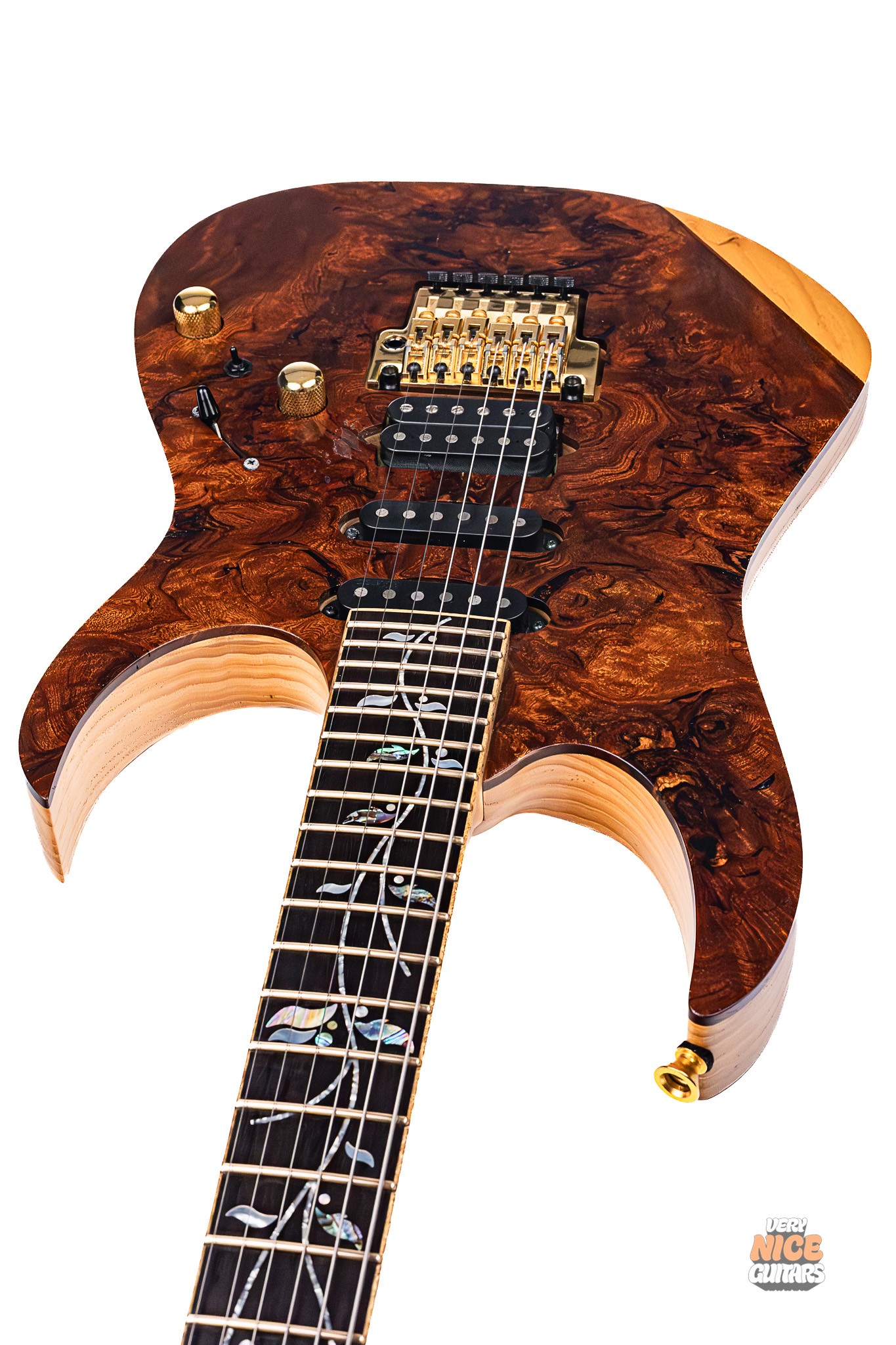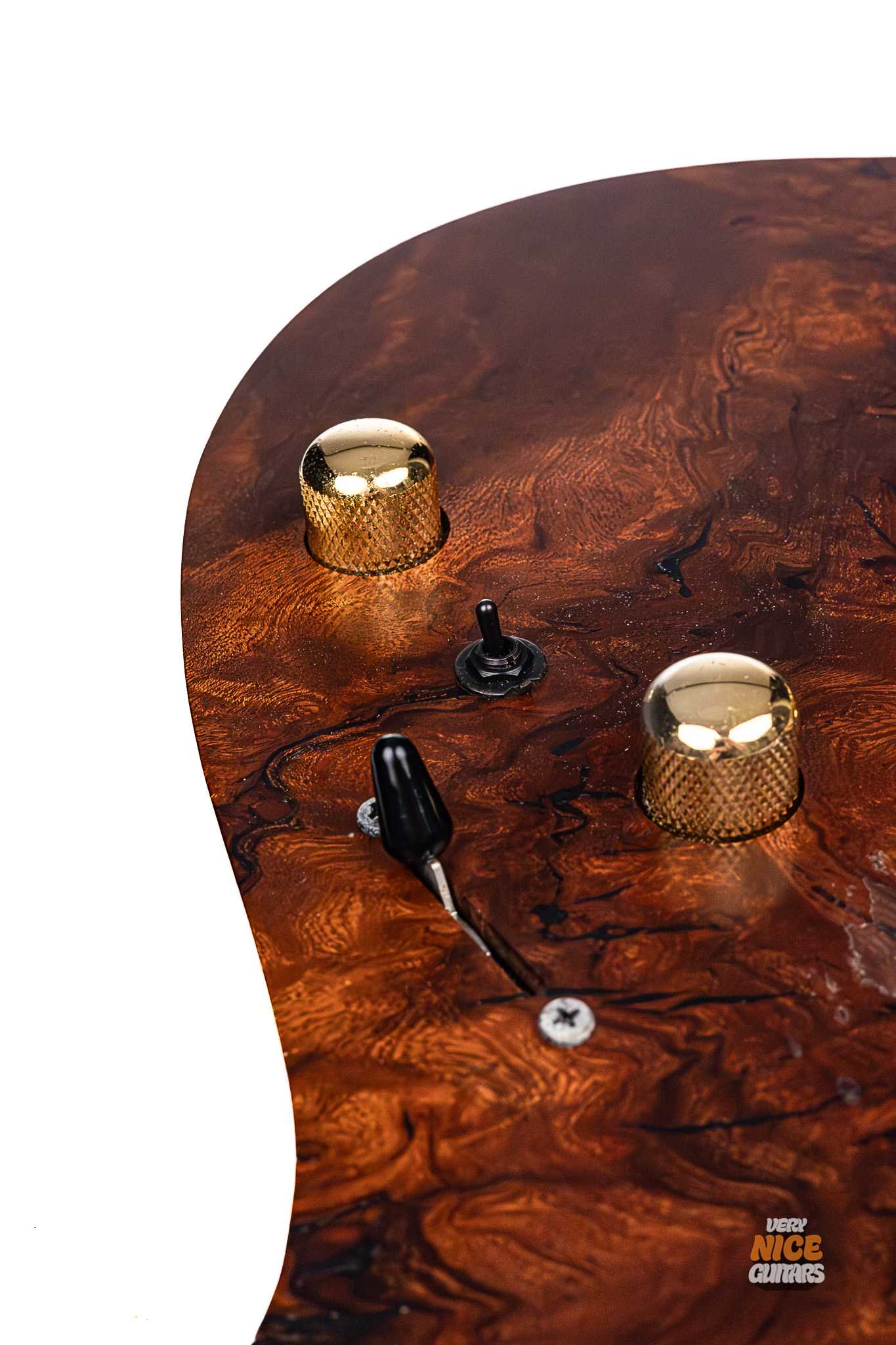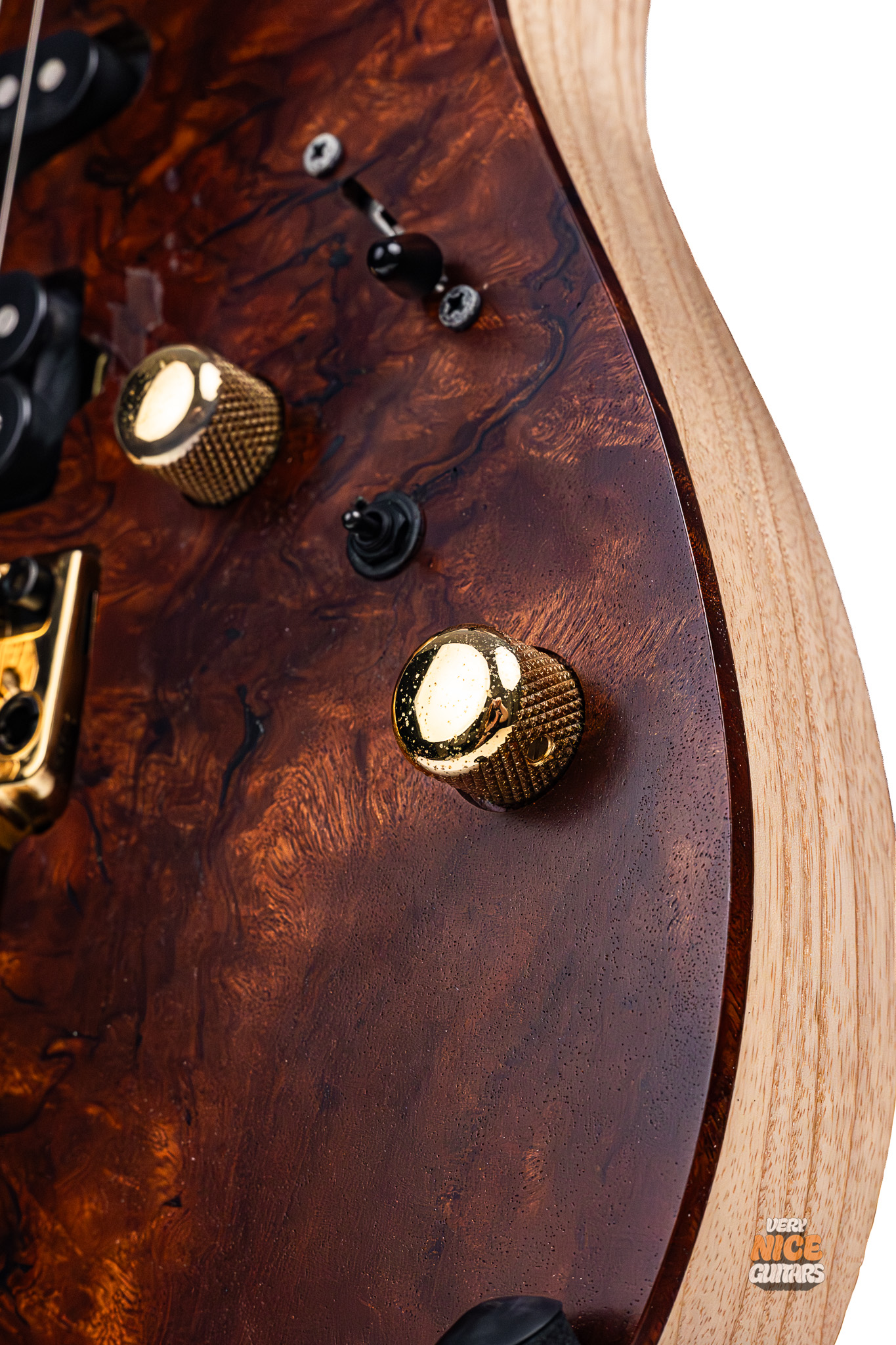 • Top: 4mm sapele burl (and 0.5mm walnut layer) w/ natural binding