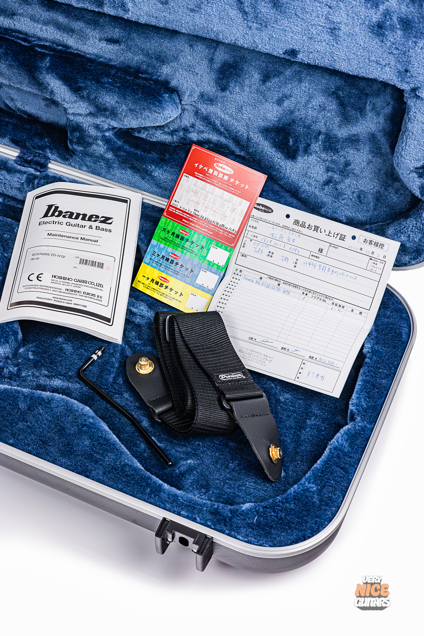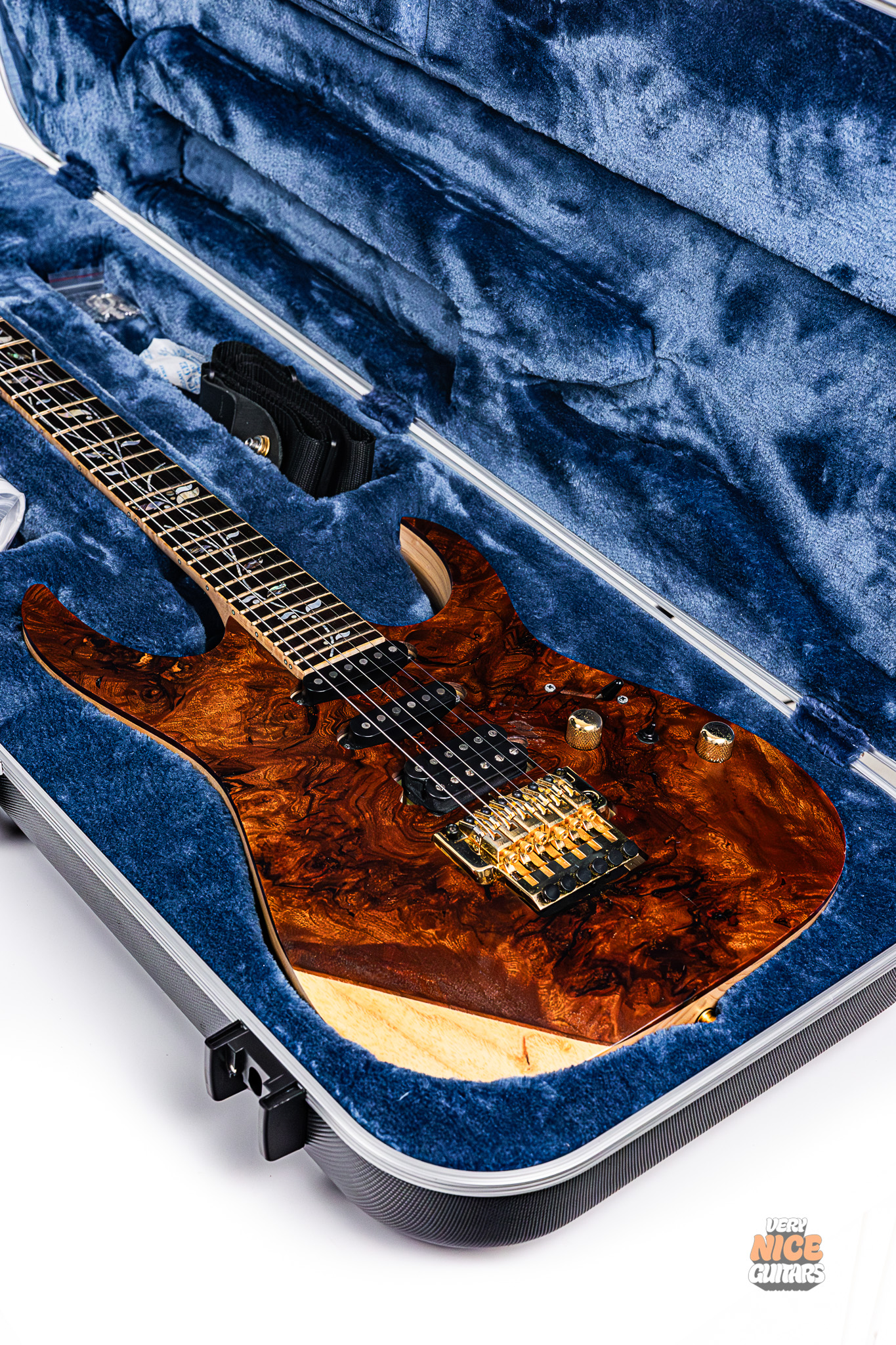 Includes: Ibanez hardshell case, owner’s manual, tremolo arm, original tags, Dunlop strap with straplocks.