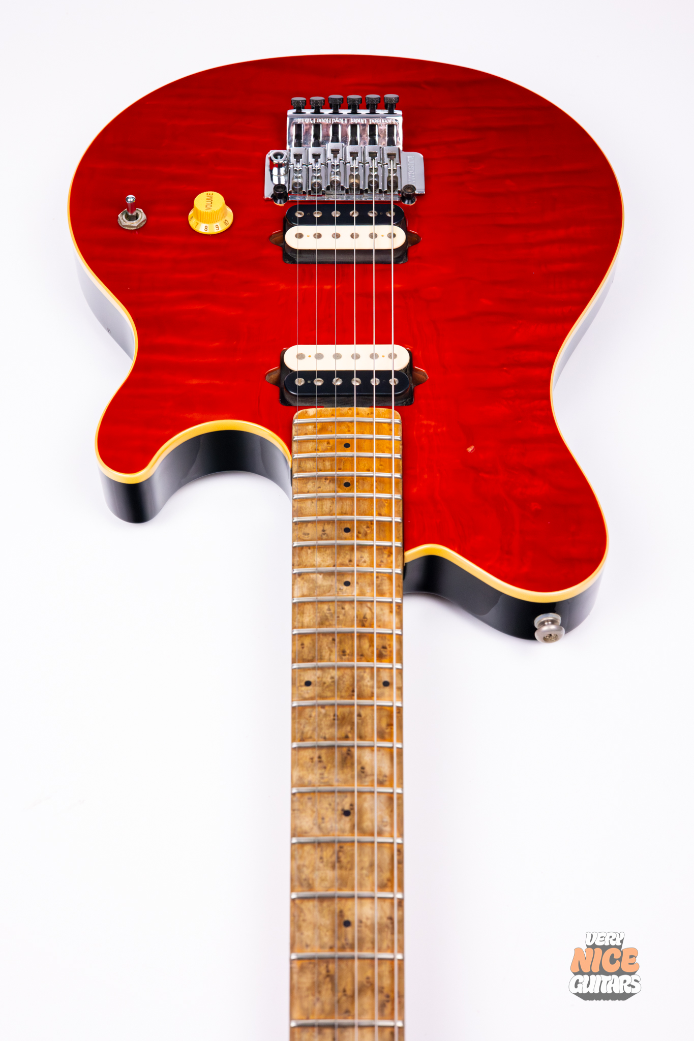 - Fingerboard: Figured birdseye maple
