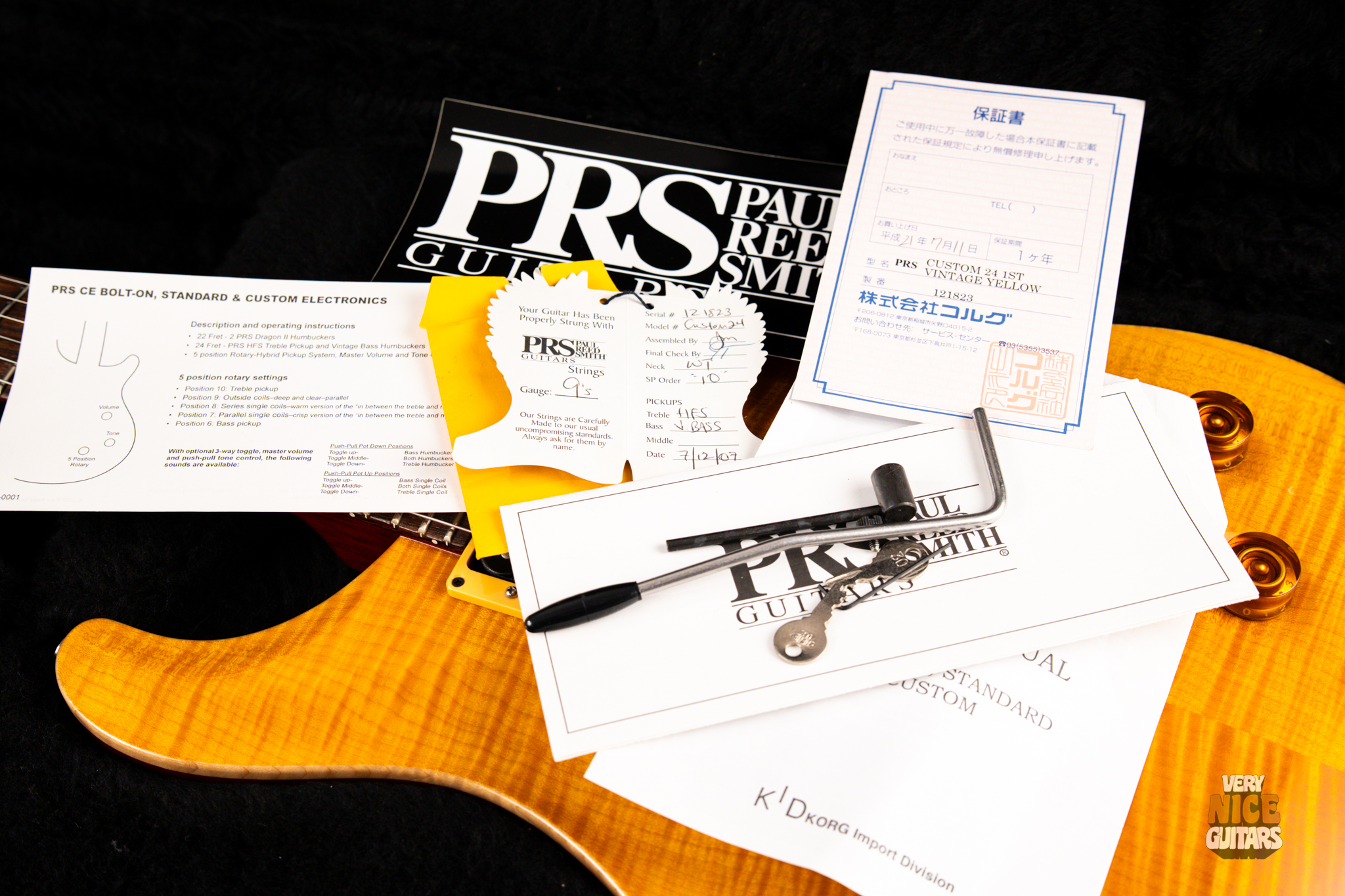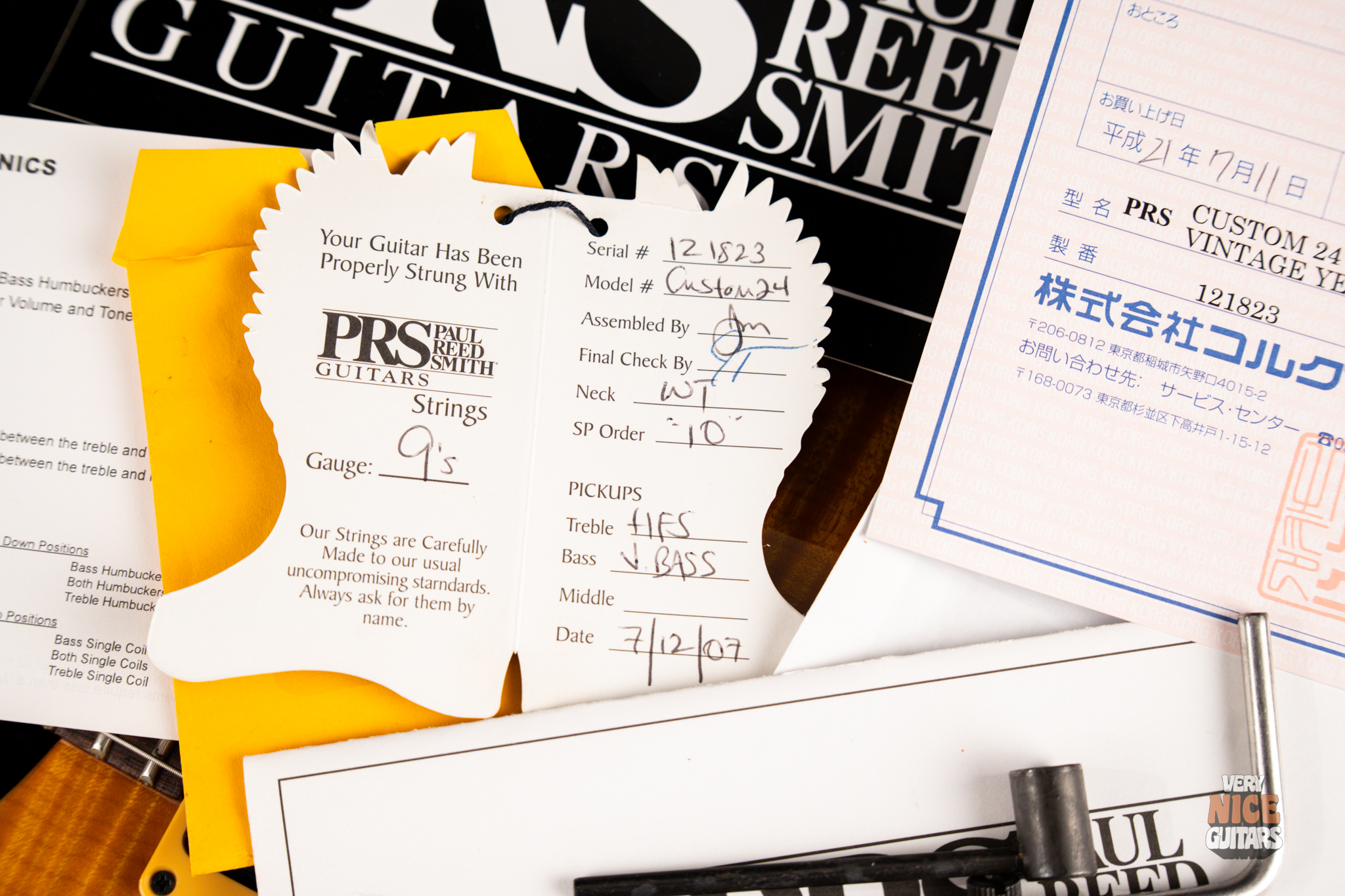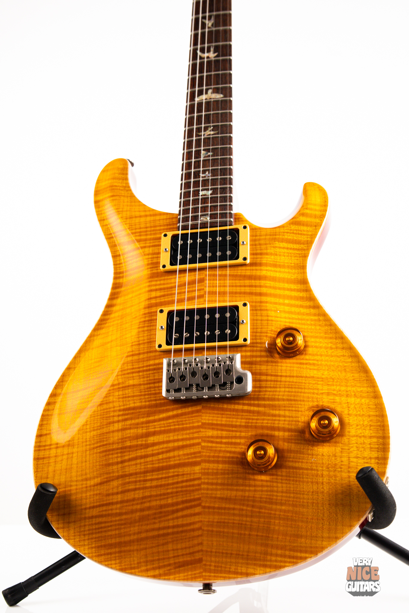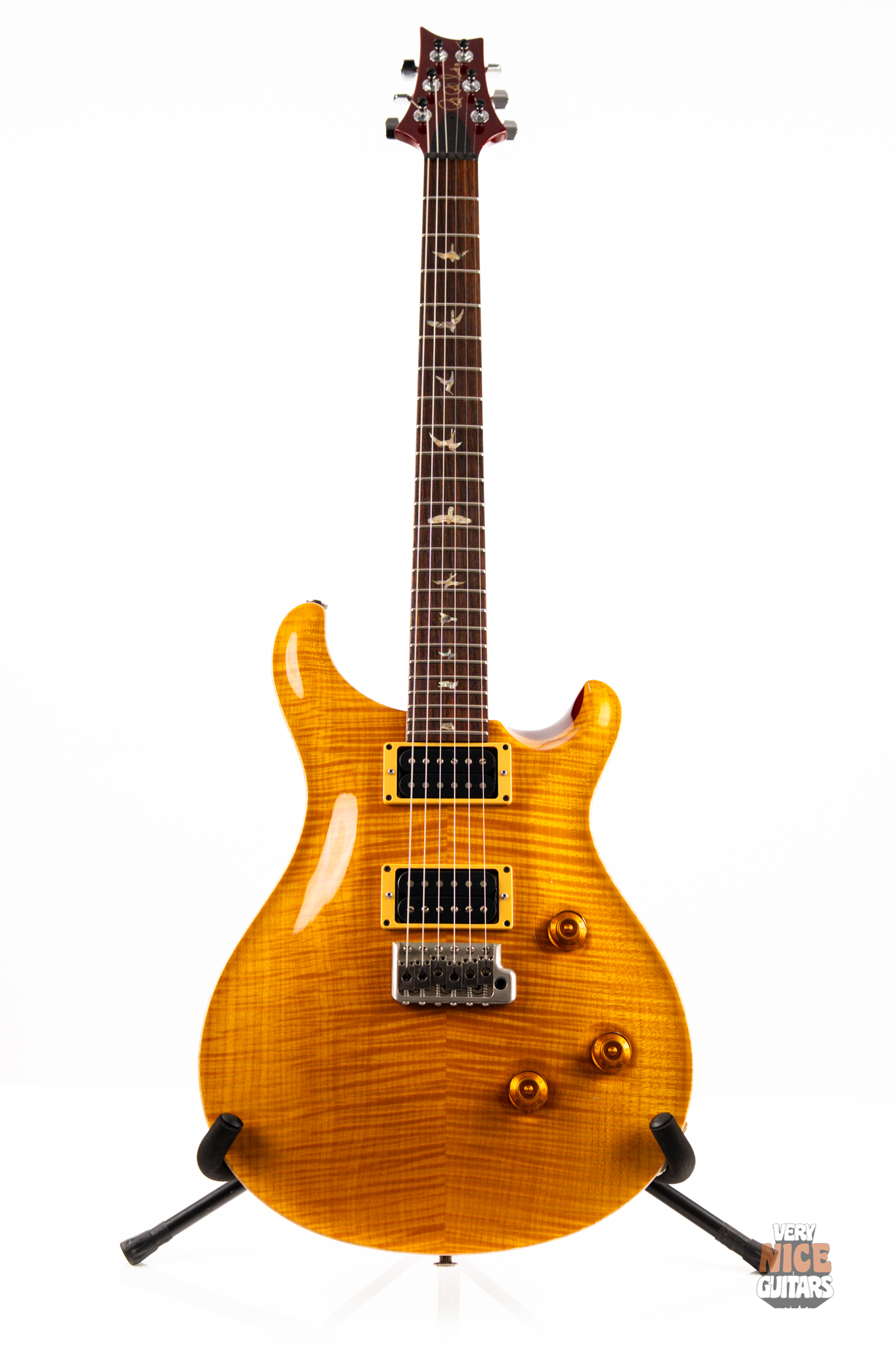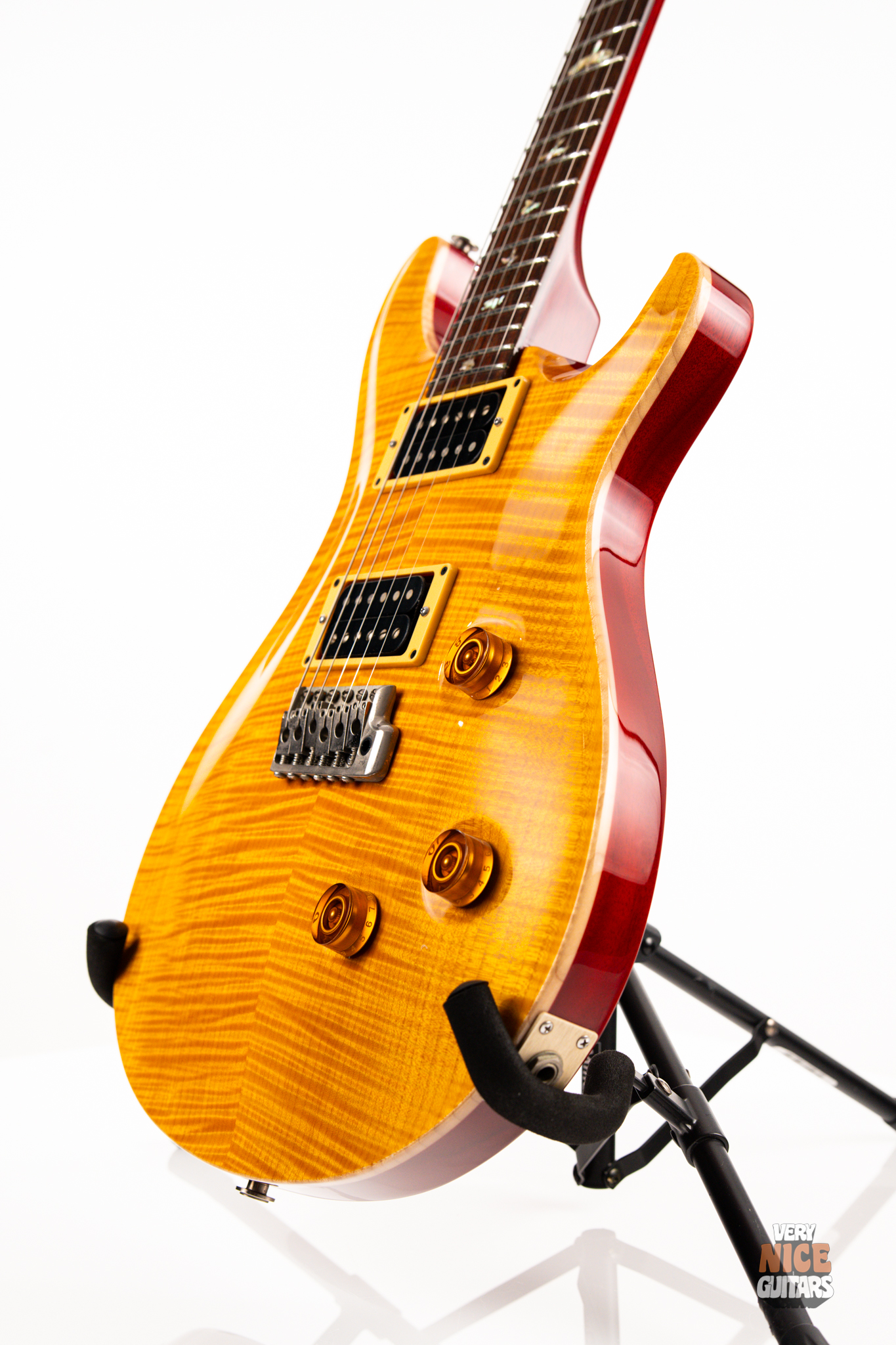 PRS guitars are well known for their build quality, superb materials (especially tops) and presence on stages all around the world. This Custom 24 features a mahogany body and neck, a controversial rotary switch, a very comfortable “Wide Thin” neck and a “10 Top” figured maple top. The top is a distinct feature here – you can see the maple grain going horizontally and vertically – please check out our photos!