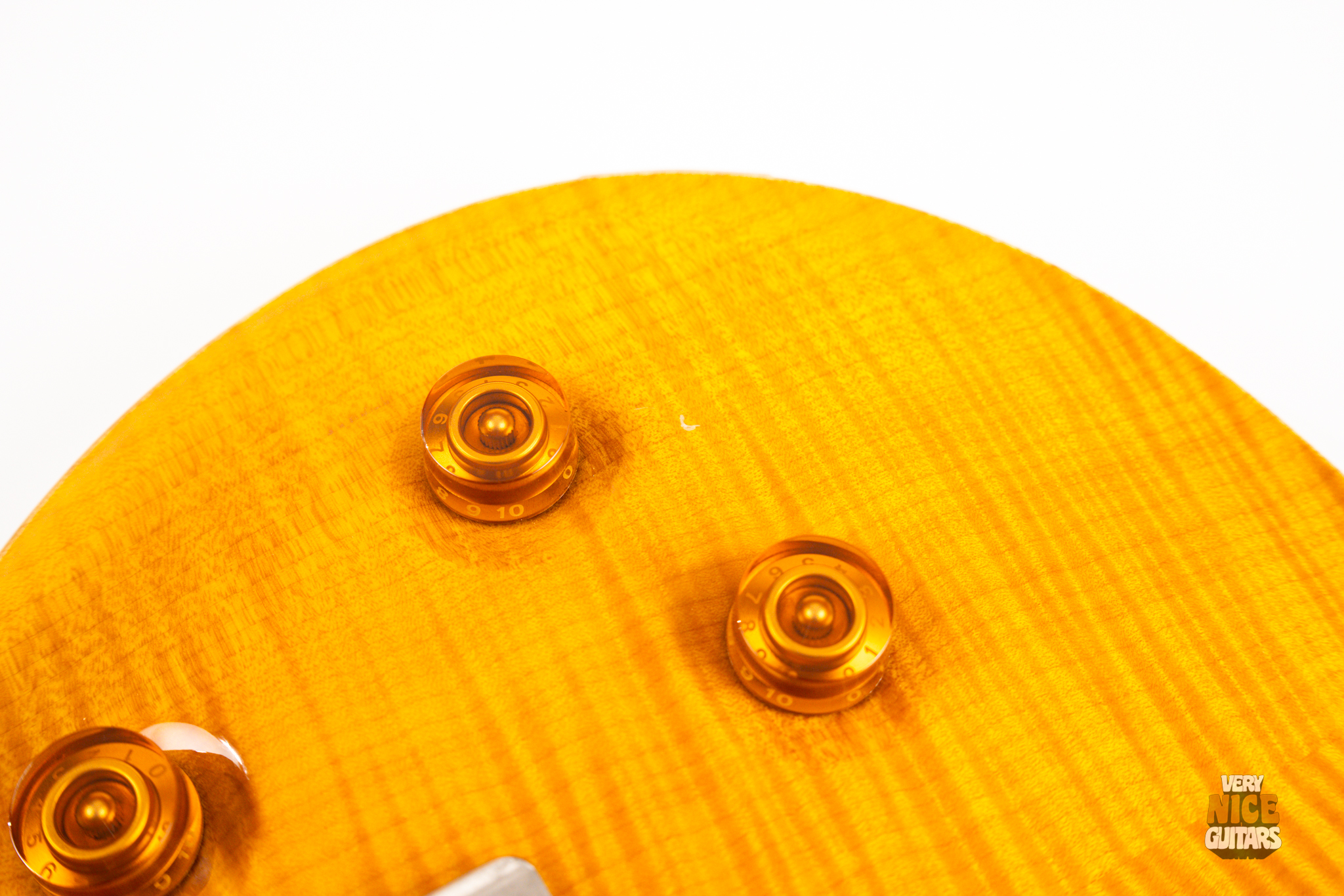This guitar is in very good condition, has only very minor scratches and dents that we did our best to photograph. The most serious ones are above the volume and below the tone pots – and they aren’t big.