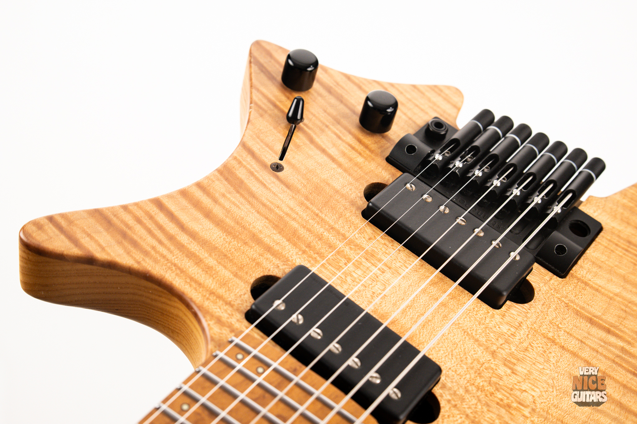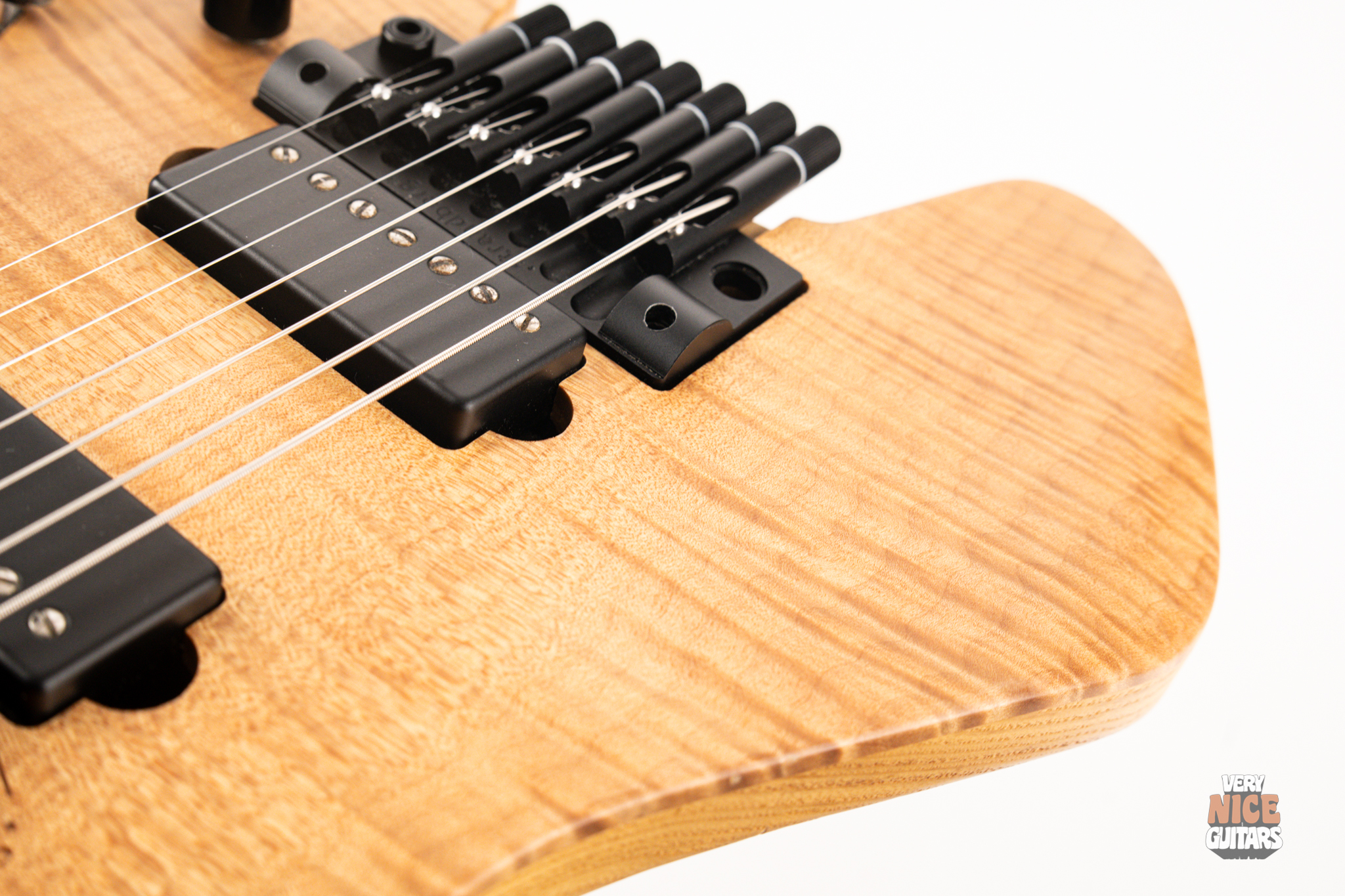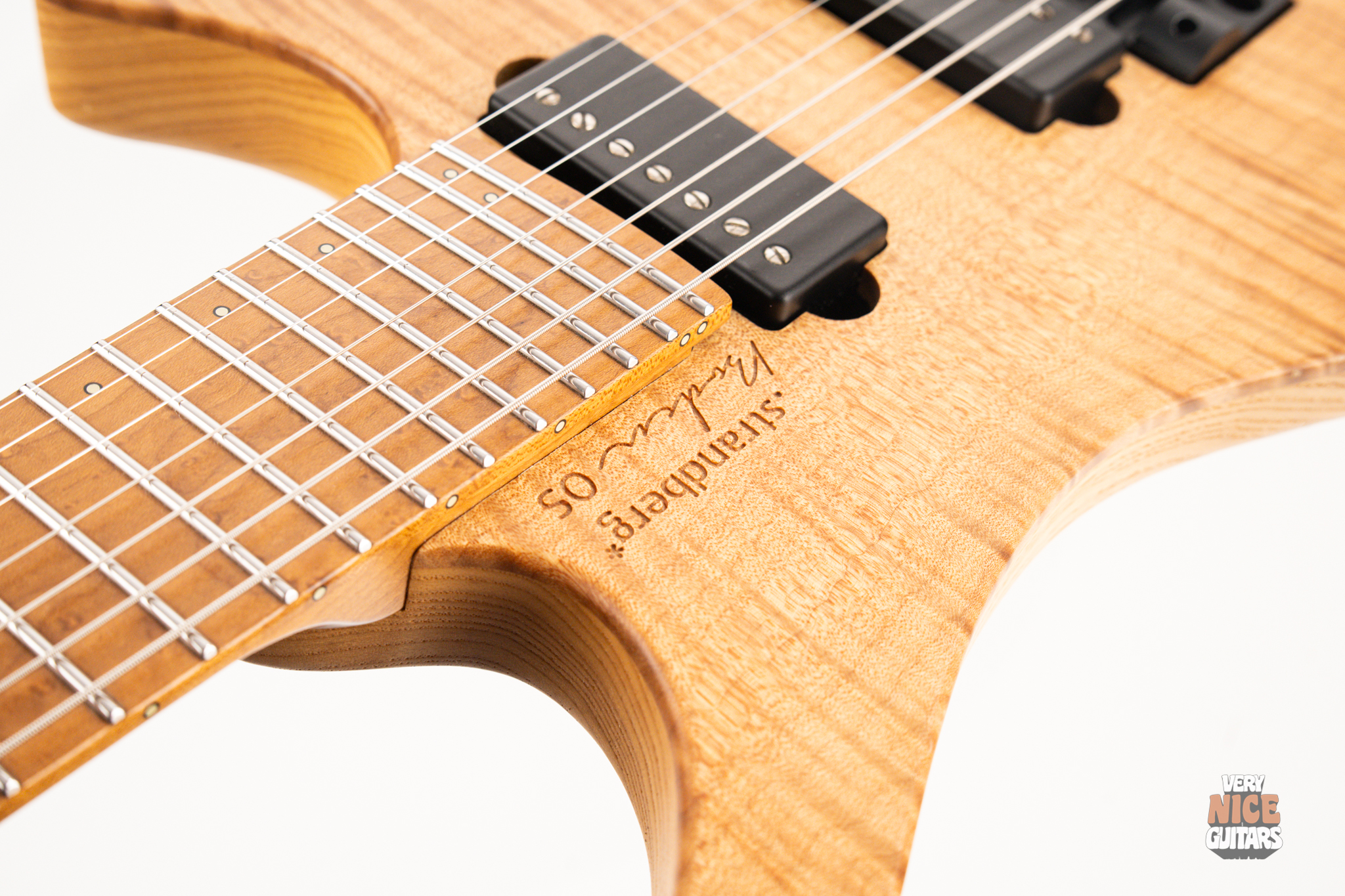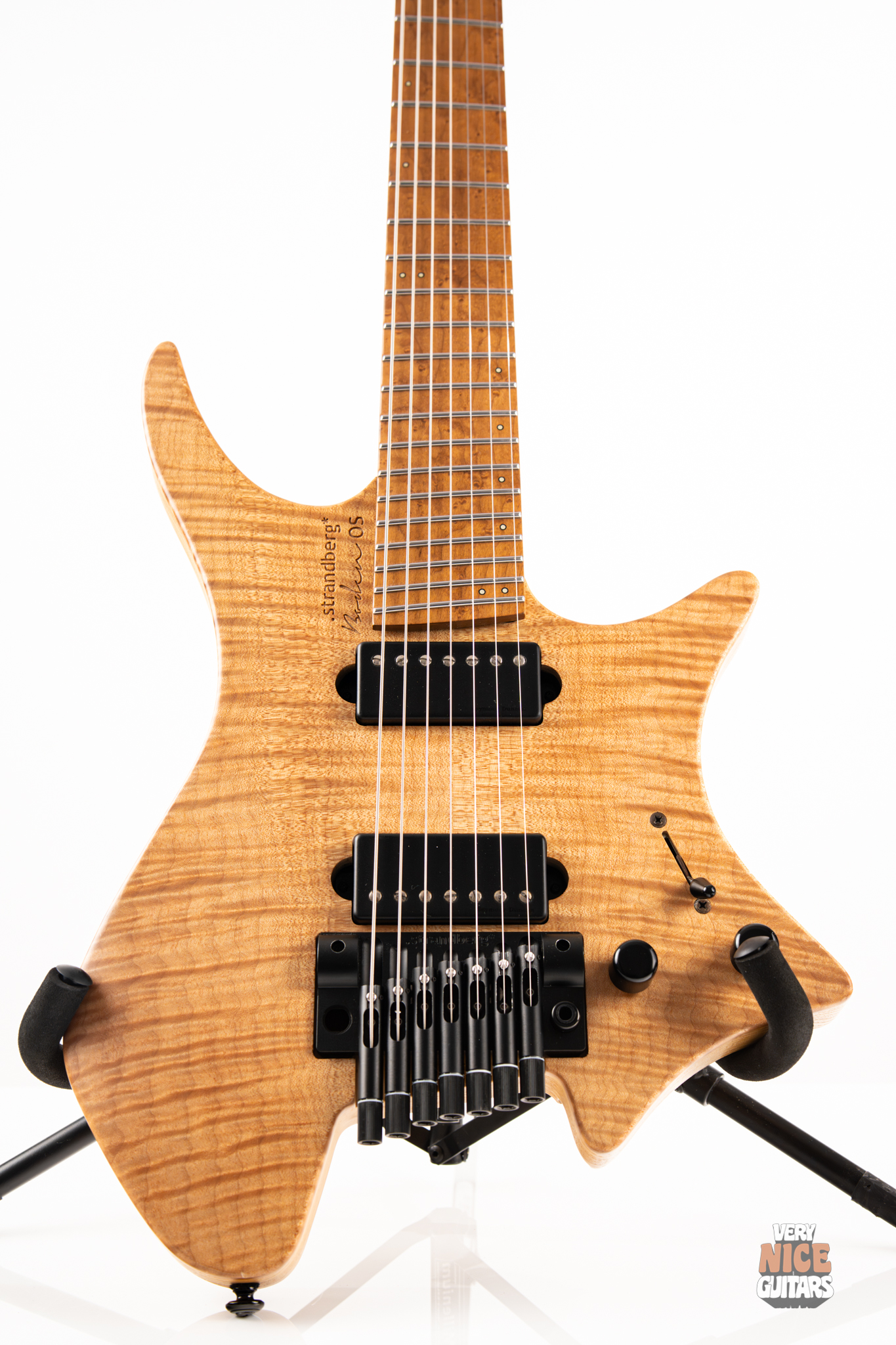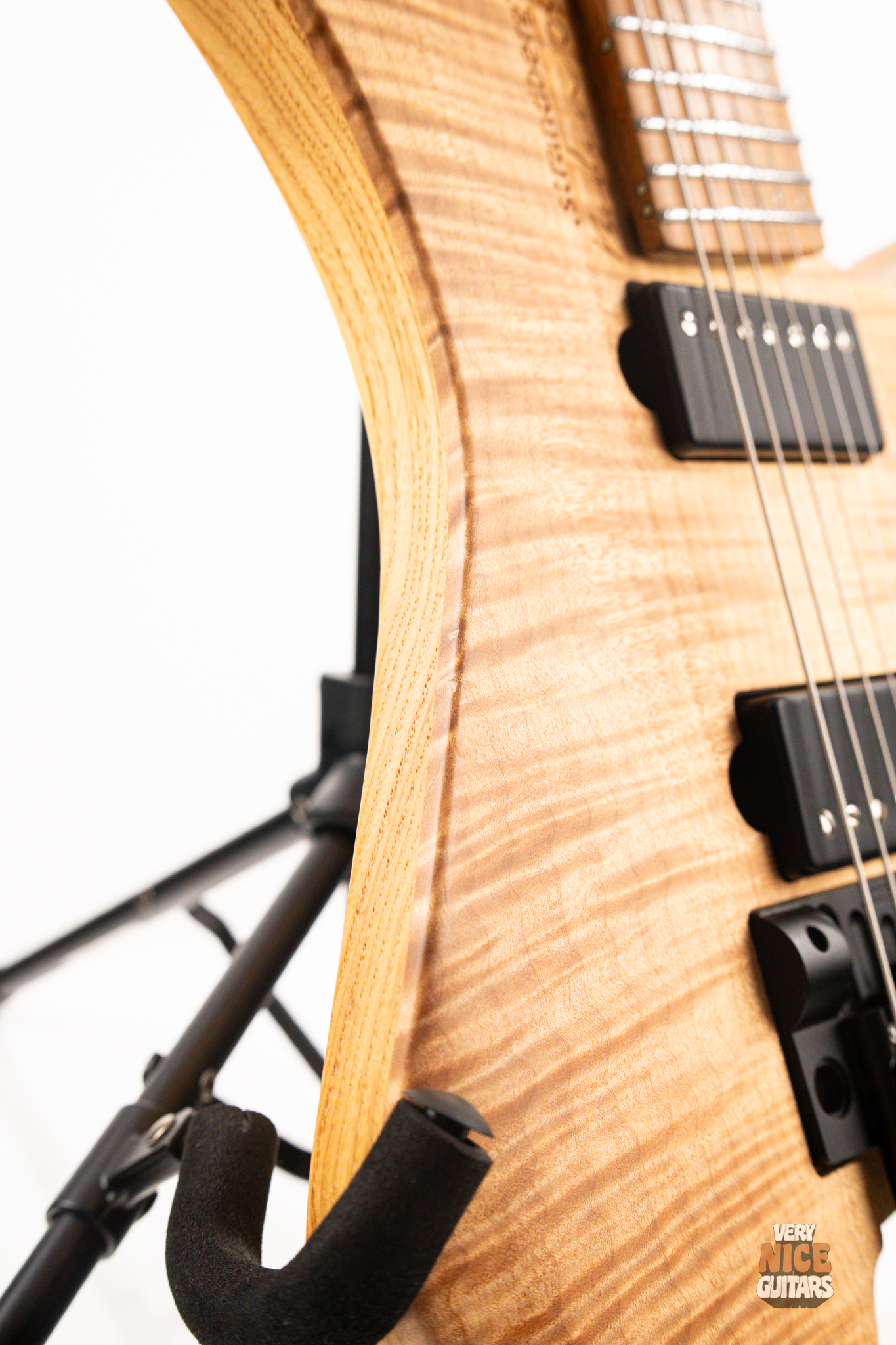 This seven-string monster features an elegant all-natural finish with an exceptional flame maple top. The Boden is renowned as one of the most comfortable extended-range guitars available, regardless of playing position. Attention to detail is outstanding throughout. The thick top, with an engraved Strandberg logo in a classic, old-school style, is truly eye-catching. A birdseye maple fretboard sits atop a roasted maple neck reinforced with carbon fiber, delivering impressively strong neck and excellent tuning stability. This version comes equipped with the easily modifiable Rev5 tremolo. The EndurNeck profile, combined with Jescar stainless steel frets, is a true game-changer for playability – give it time, and you’ll never look back. And yes, this beauty is loaded with Seymour Duncan Sentient and Pegasus pickups.