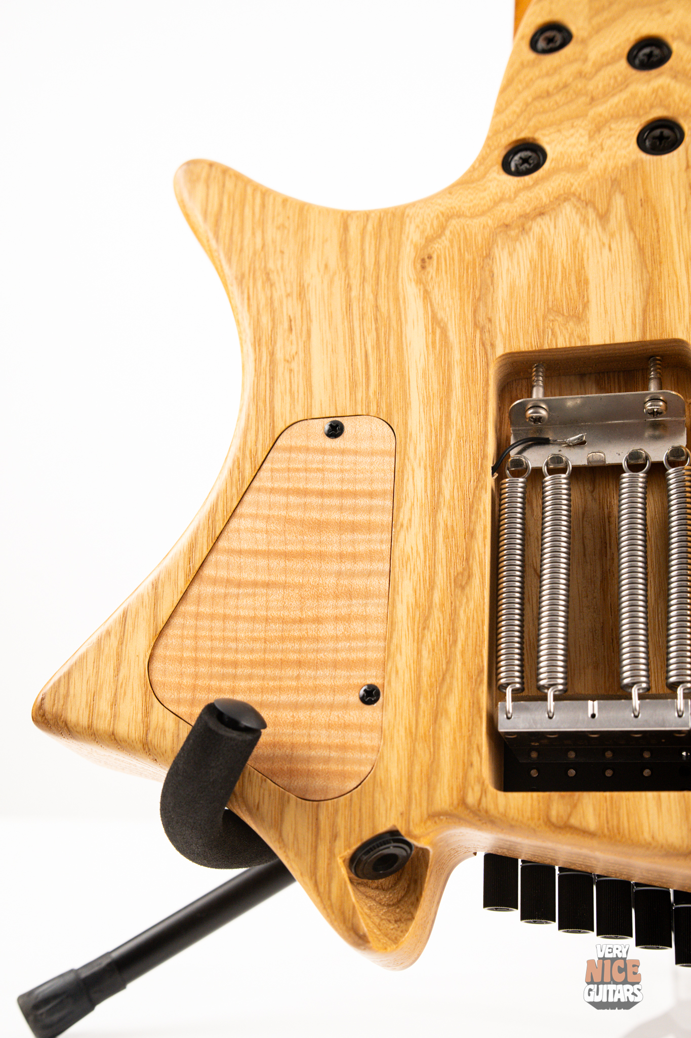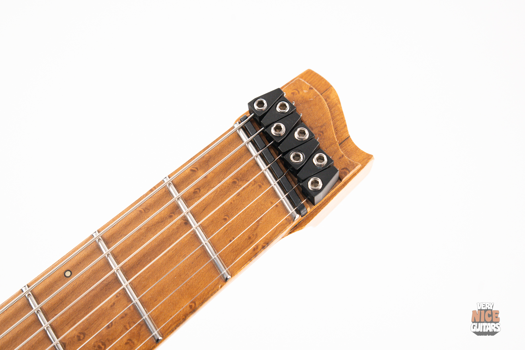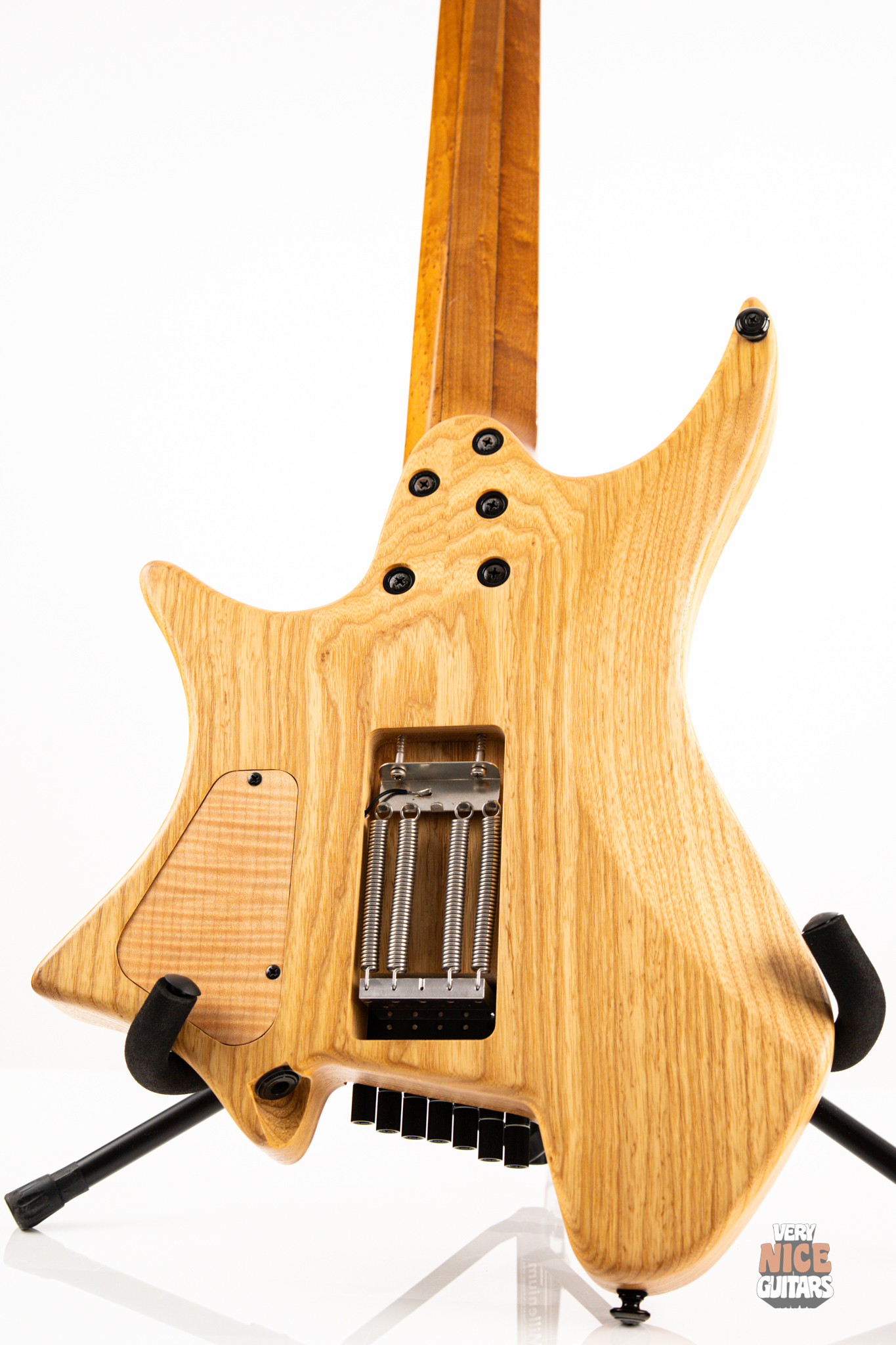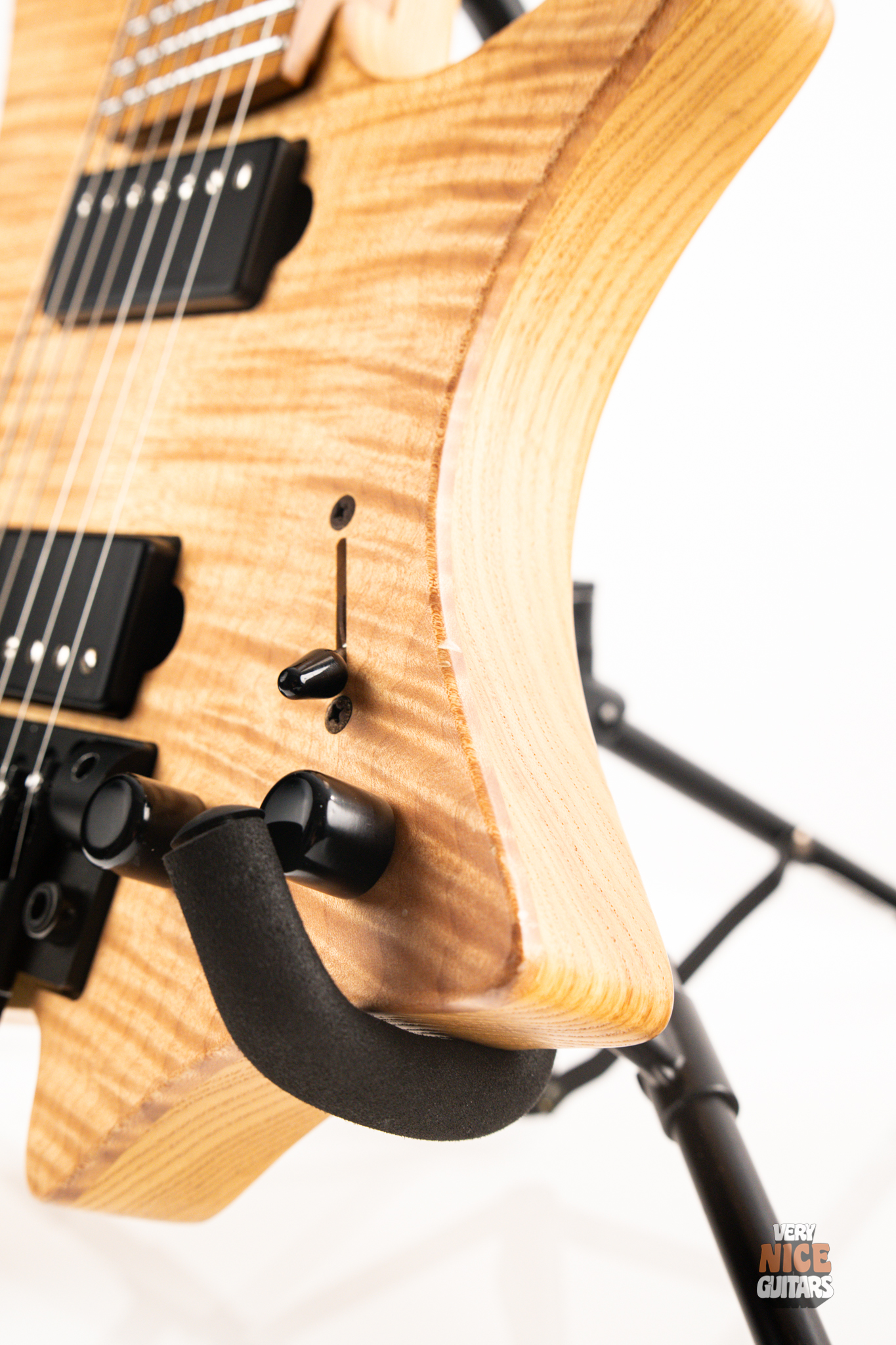 This seven-string monster features an elegant all-natural finish with an exceptional flame maple top. The Boden is renowned as one of the most comfortable extended-range guitars available, regardless of playing position. Attention to detail is outstanding throughout. The thick top, with an engraved Strandberg logo in a classic, old-school style, is truly eye-catching. A birdseye maple fretboard sits atop a roasted maple neck reinforced with carbon fiber, delivering impressively strong neck and excellent tuning stability. This version comes equipped with the easily modifiable Rev5 tremolo. The EndurNeck profile, combined with Jescar stainless steel frets, is a true game-changer for playability – give it time, and you’ll never look back. And yes, this beauty is loaded with Seymour Duncan Sentient and Pegasus pickups.