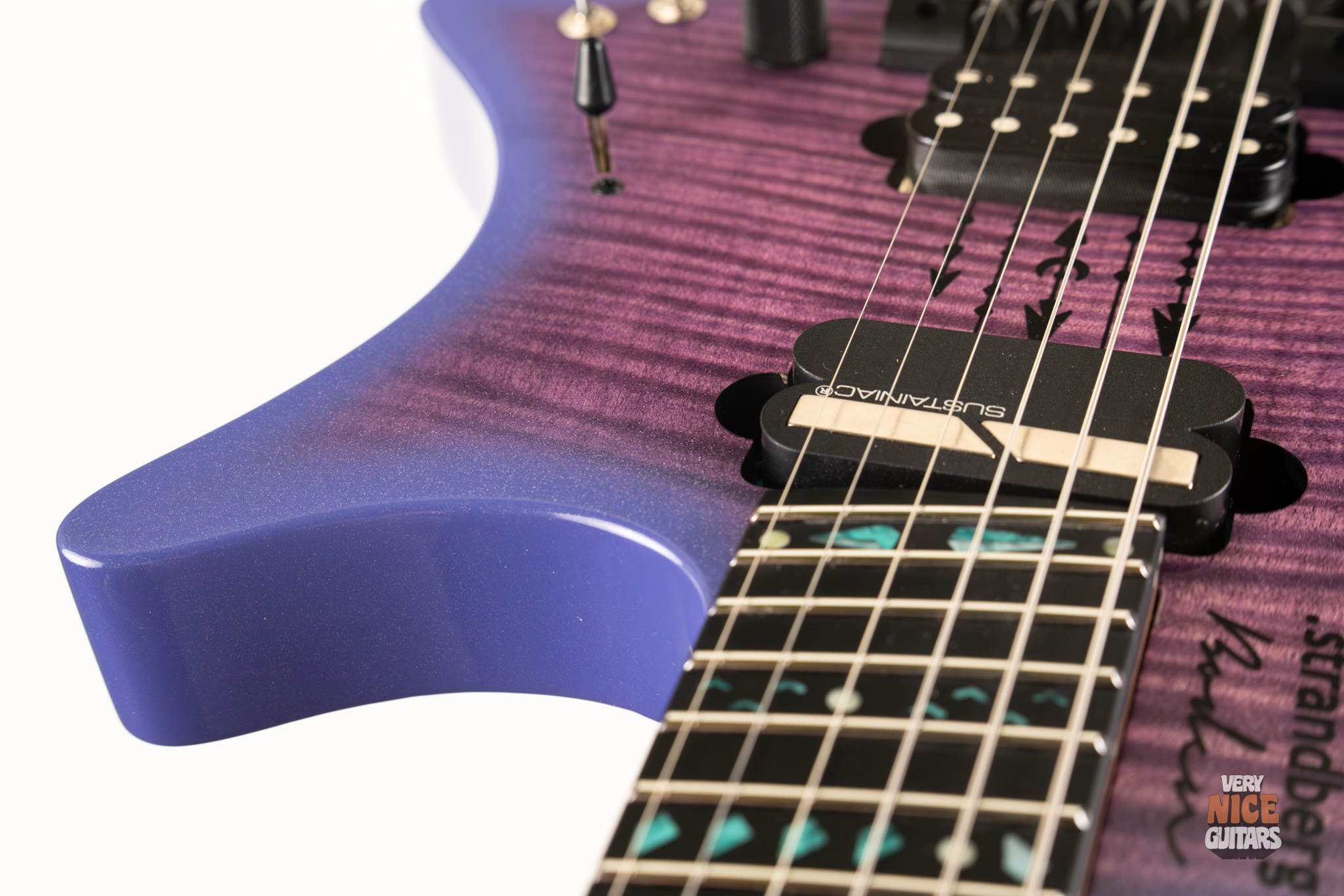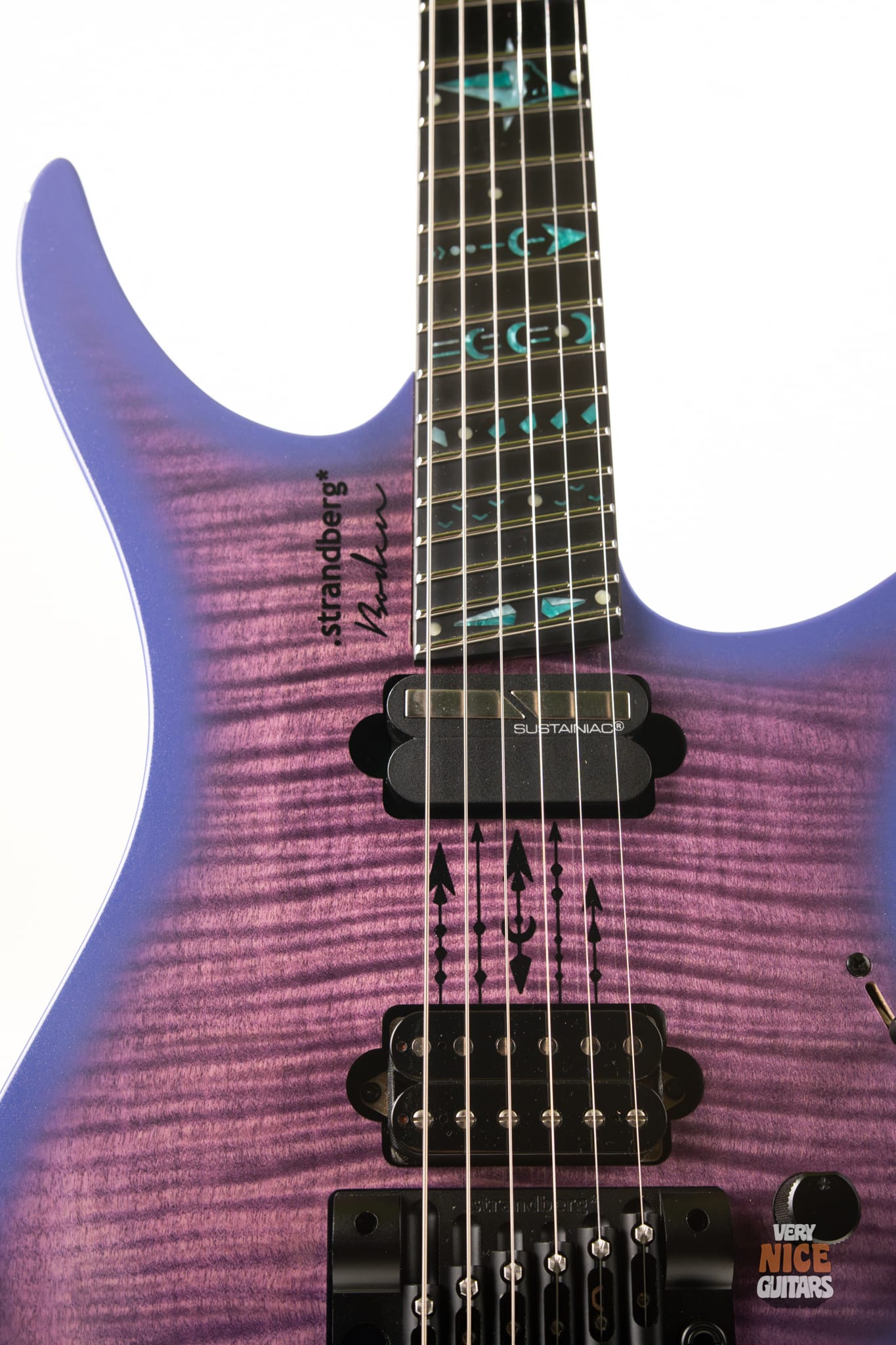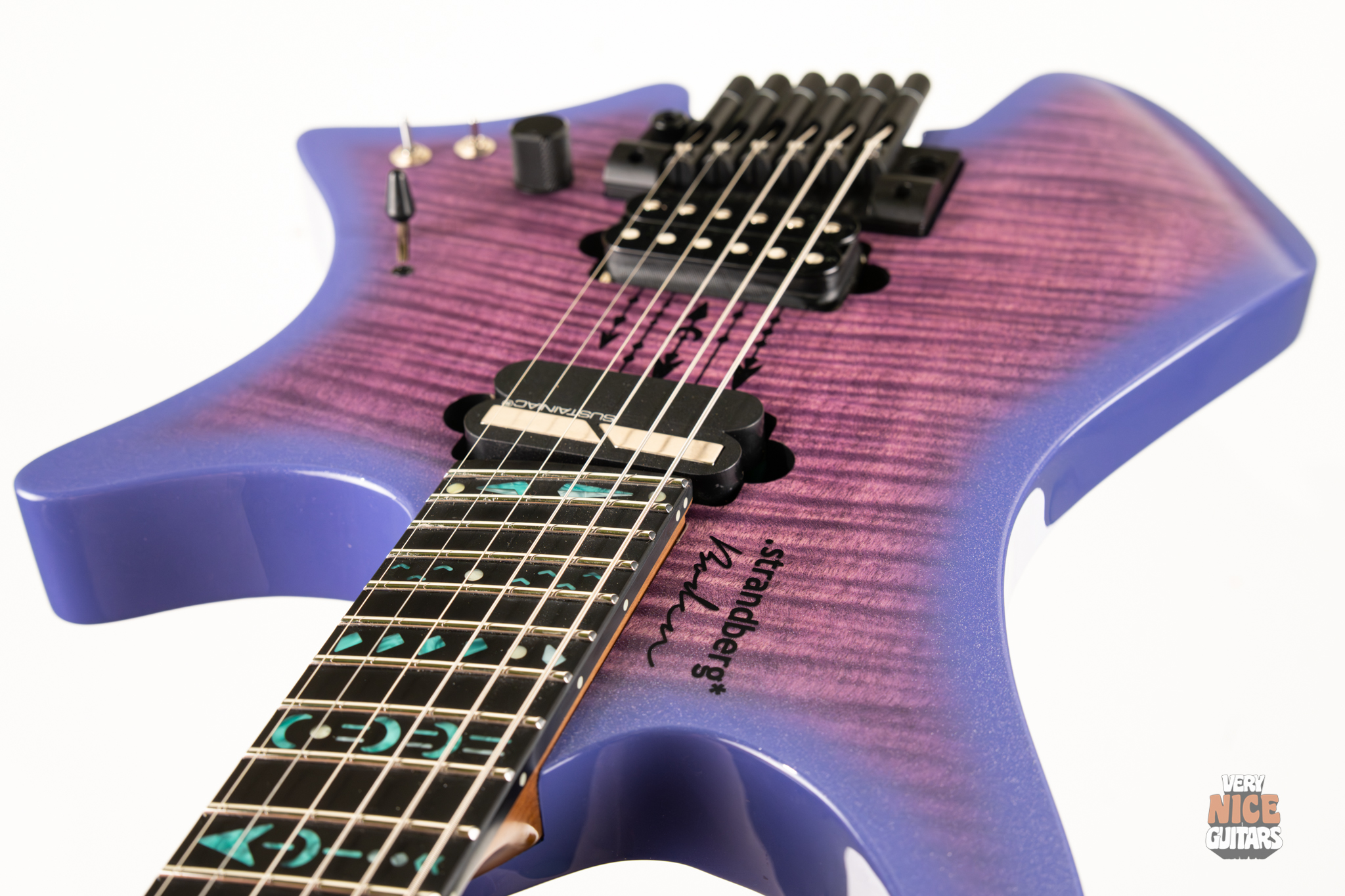 Produced in limited numbers, this guitar is already highly sought after and is likely to become a true collector’s item. It features the signature Strandberg EndurNeck, designed to naturally guide your thumb for optimal playing comfort. The guitar is equipped with passive Suhr SSH+ and a Sustainiac Stealth Pro Humbucker, which delivers clarity, power and endless sustain. The collaboration between Jordan and Ola has resulted in a truly unique-looking Boden, with a striking purple-pink burst over a flamed maple top, finished in high-gloss for maximum pop. Fretboard is made from Ebonol – a composite, human made material which is extremely smooth to play and is unaffected by weather conditions.