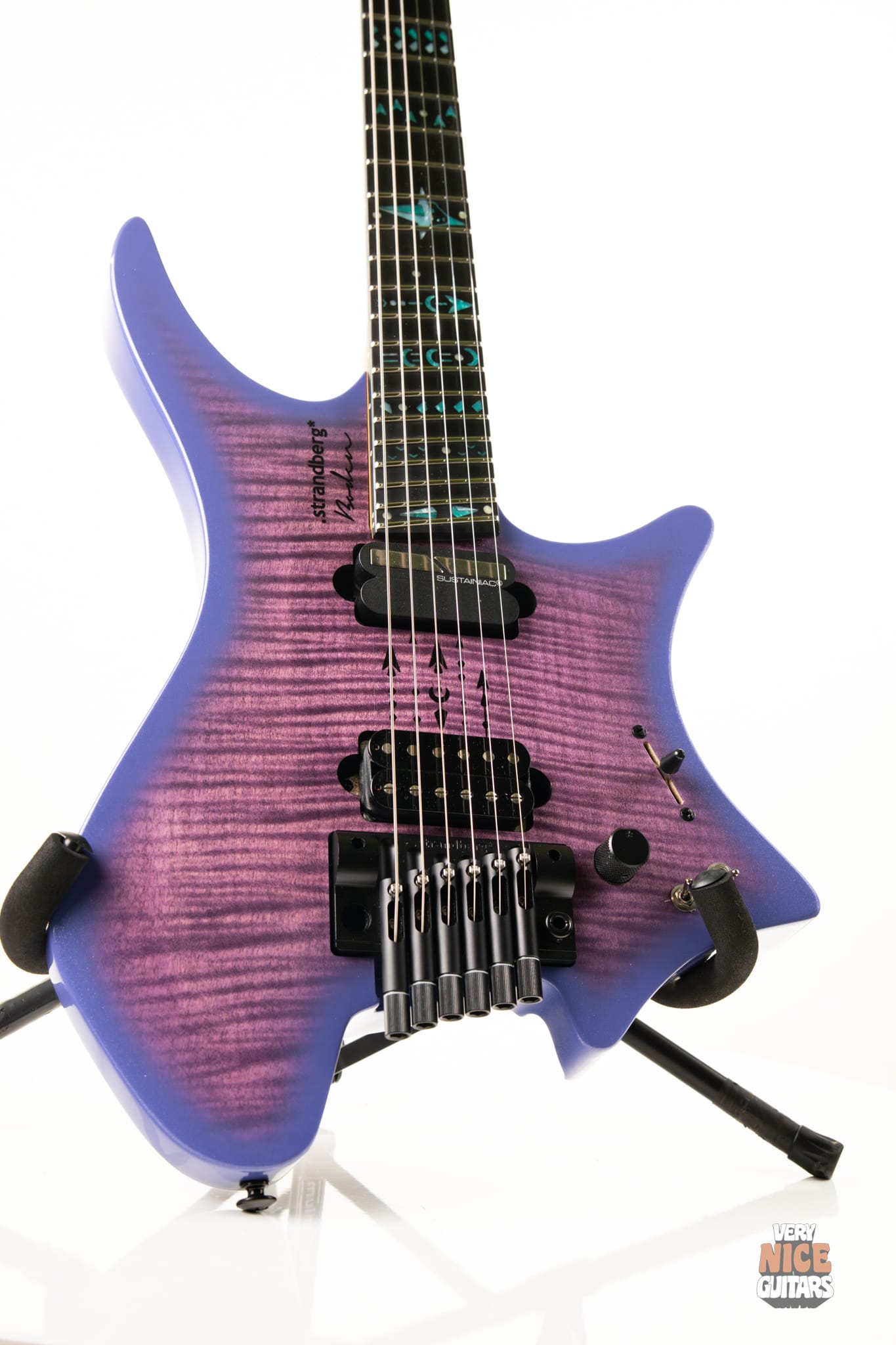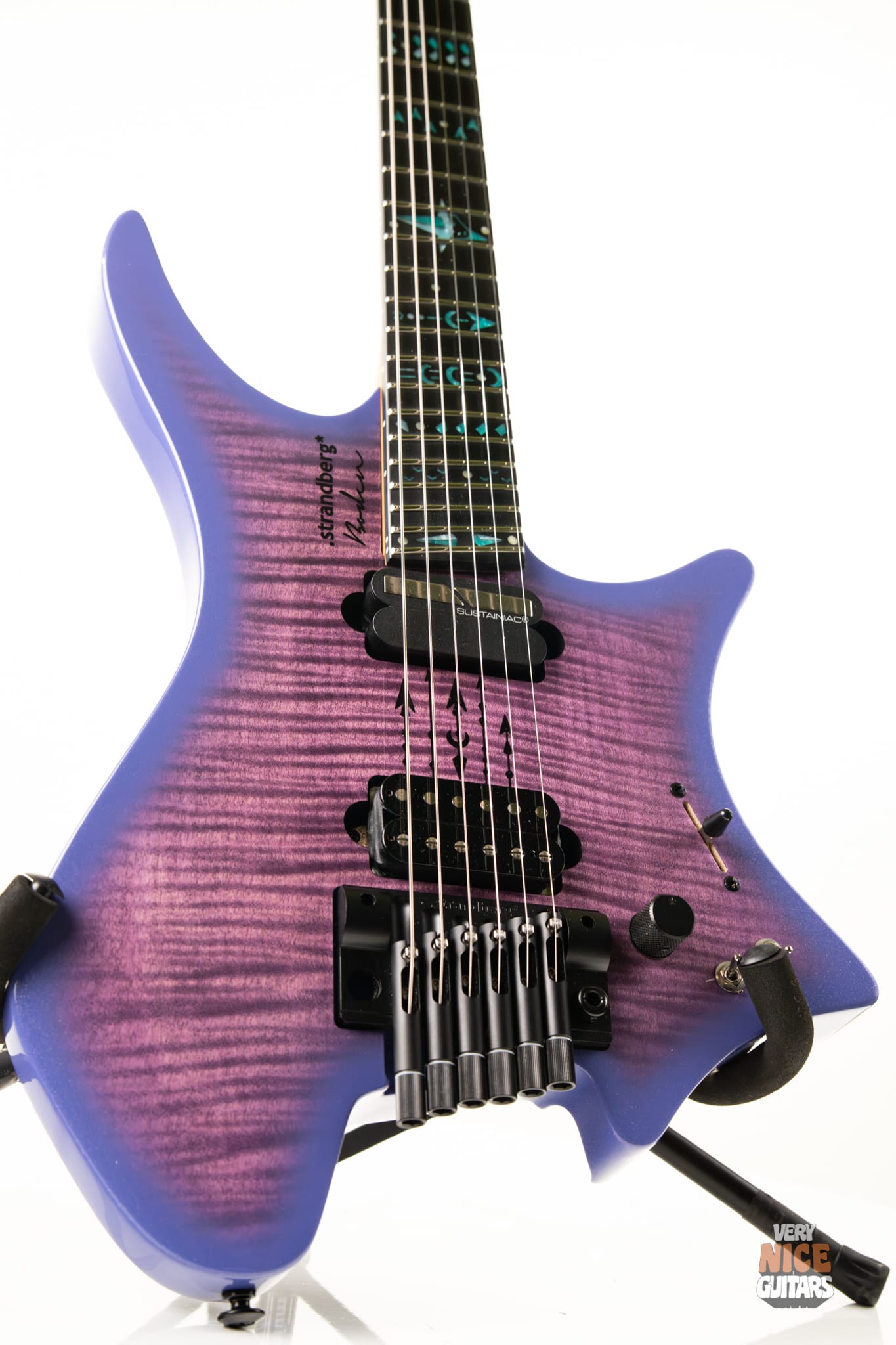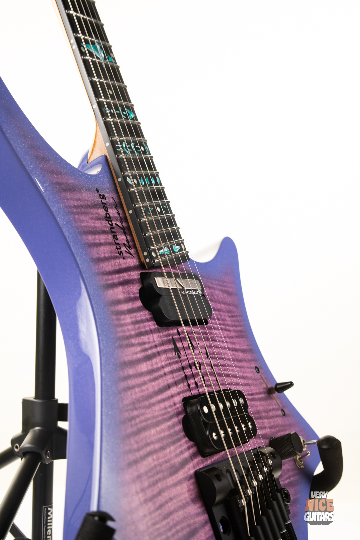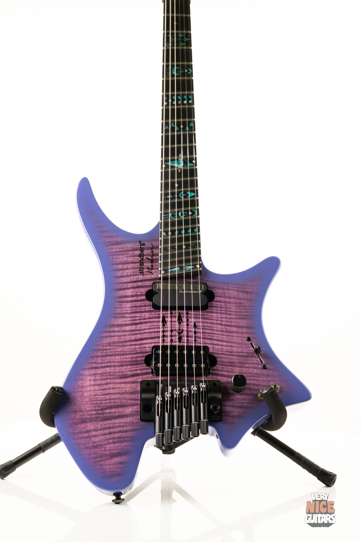 Produced in limited numbers, this guitar is already highly sought after and is likely to become a true collector’s item. It features the signature Strandberg EndurNeck, designed to naturally guide your thumb for optimal playing comfort. The guitar is equipped with passive Suhr SSH+ and a Sustainiac Stealth Pro Humbucker, which delivers clarity, power and endless sustain. The collaboration between Jordan and Ola has resulted in a truly unique-looking Boden, with a striking purple-pink burst over a flamed maple top, finished in high-gloss for maximum pop. Fretboard is made from Ebonol – a composite, human made material which is extremely smooth to play and is unaffected by weather conditions.