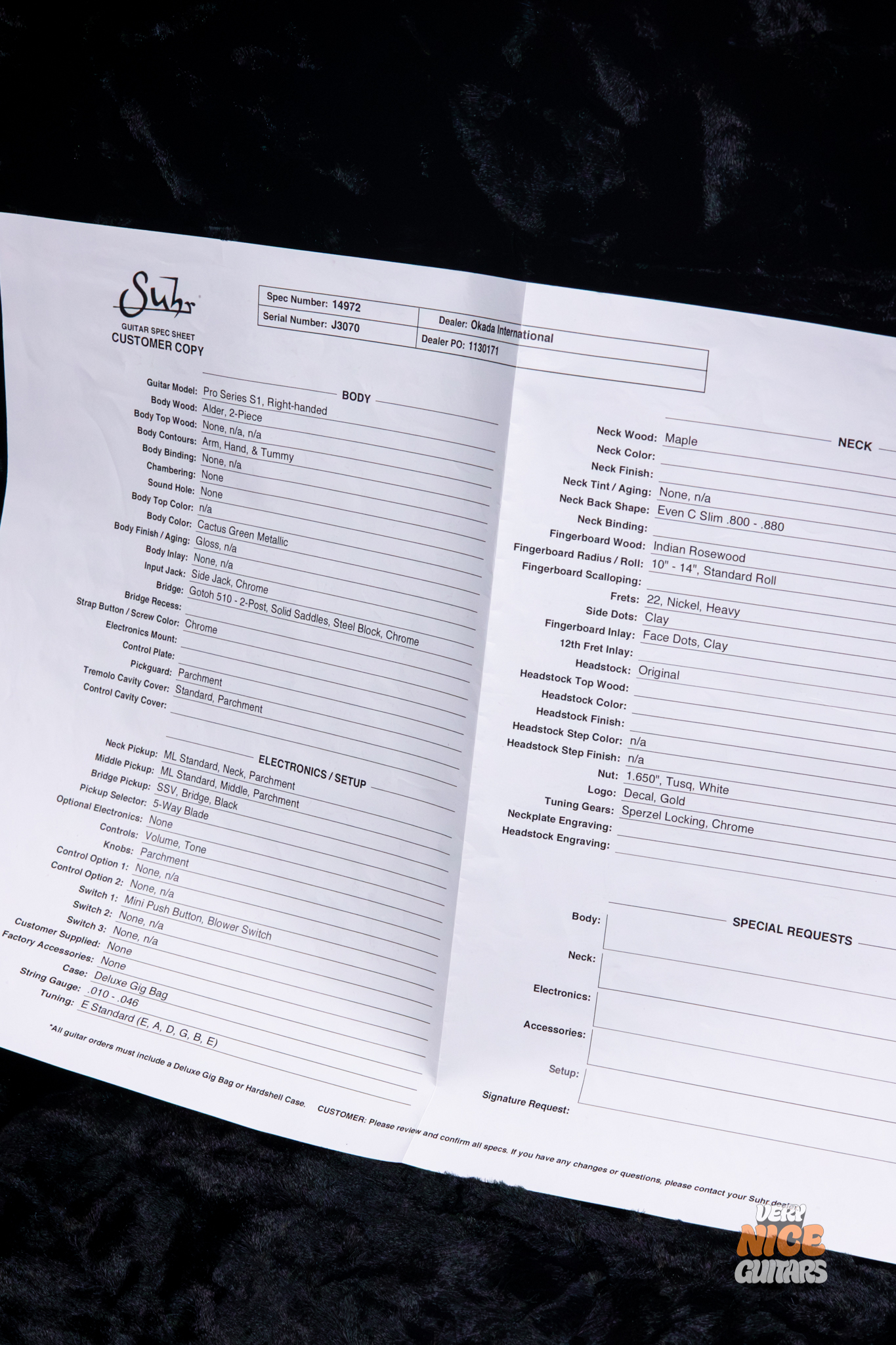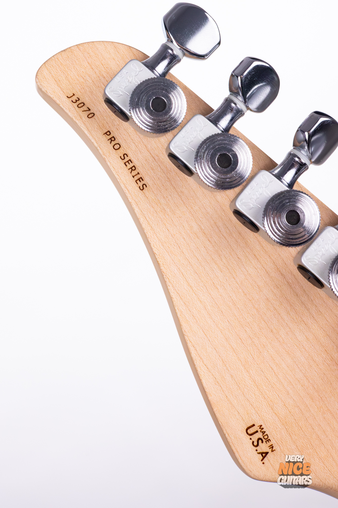 This guitar consists of a 2-piece alder body with a bolt on maple neck. The Indian rosewood fingerboard is fitted with 22 heavy nickel frets. The hardware on this model is chrome, with Sperzel locking tuners and a Gotoh 510 2-point tremolo system ensuring tuning stability. Do not let the classic appearance of this guitar mislead you – under the hood, besides the SSV humbucker and two ML Standard single coils, you will find what Suhr calls a blower switch. It allows the user to jump from any pickup setting to the bridge pickup on full volume. The 5-way blade pickup switch lets you select between humbucker and single coil tones and combinations.